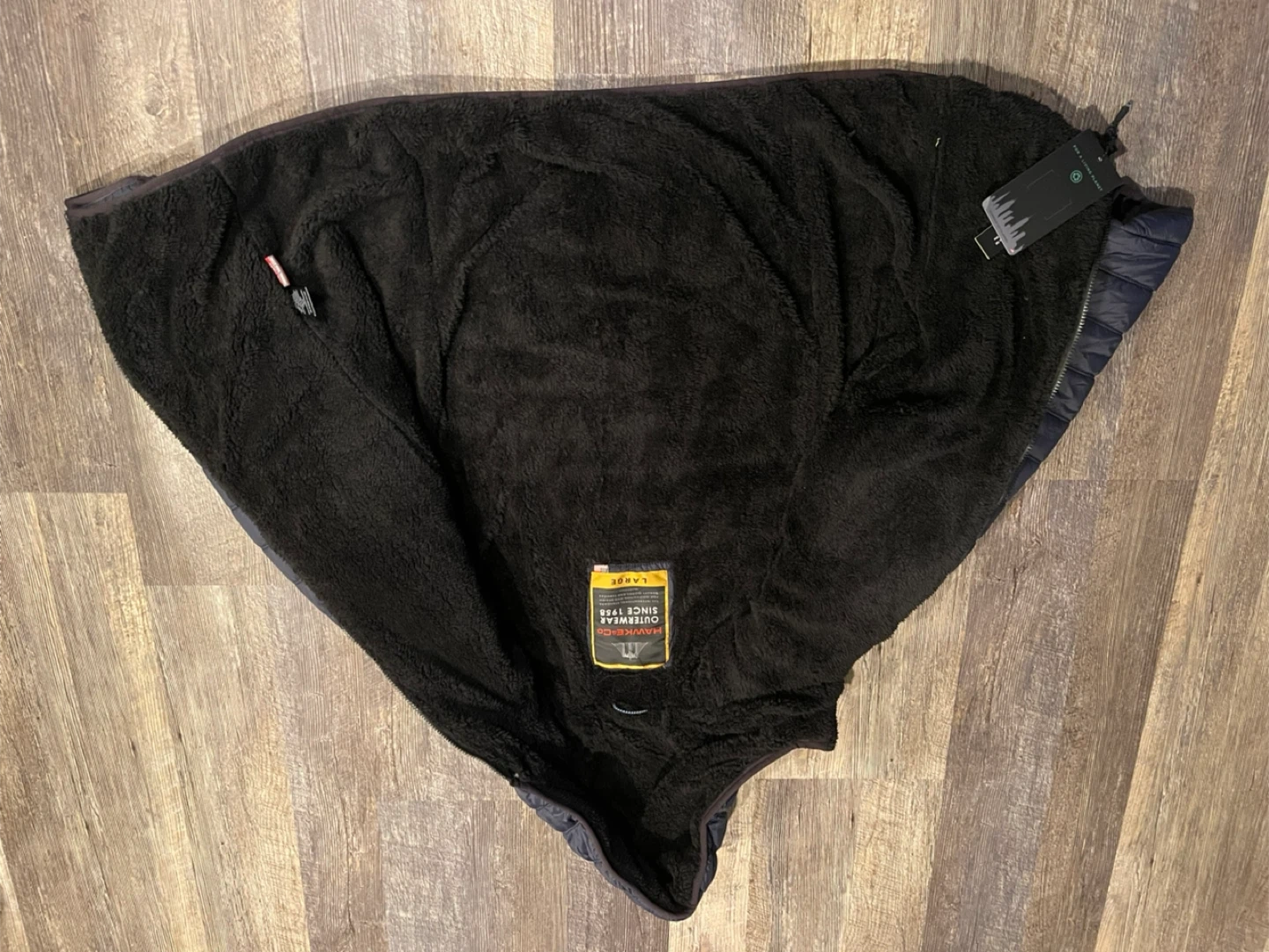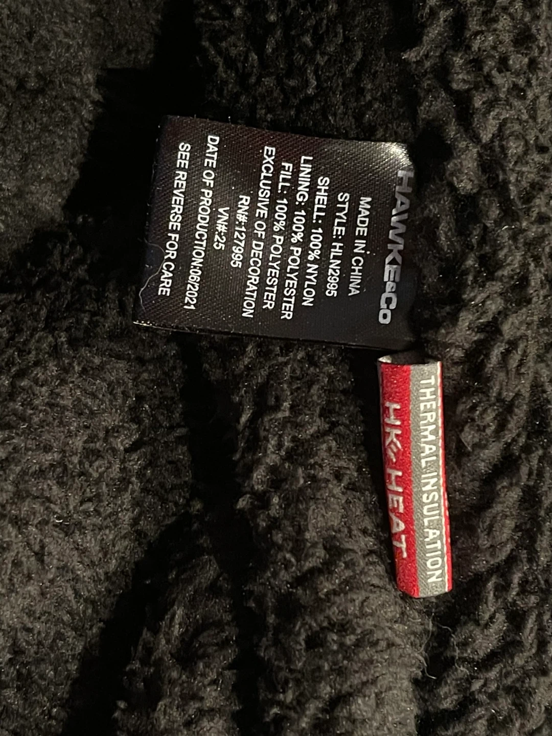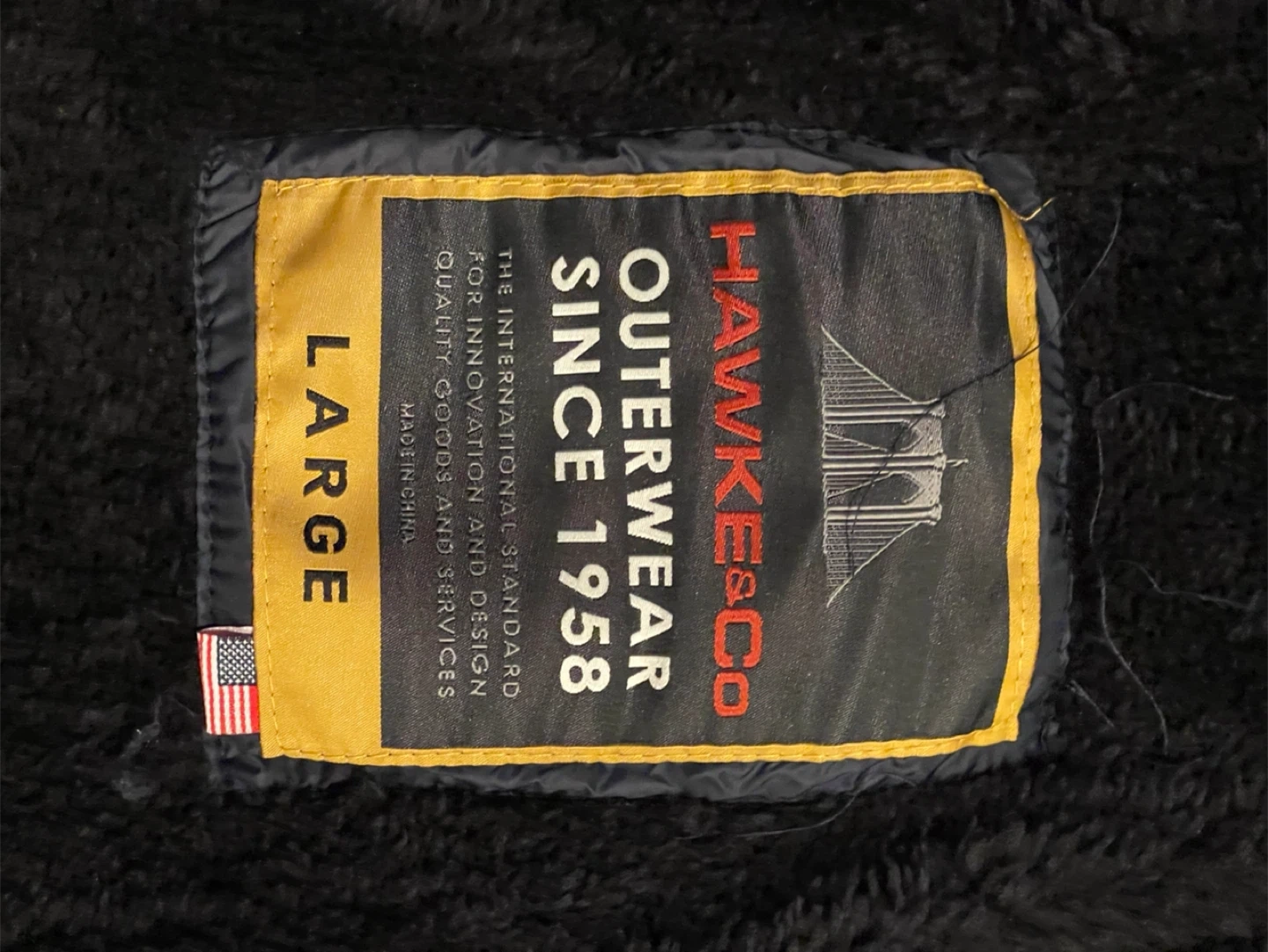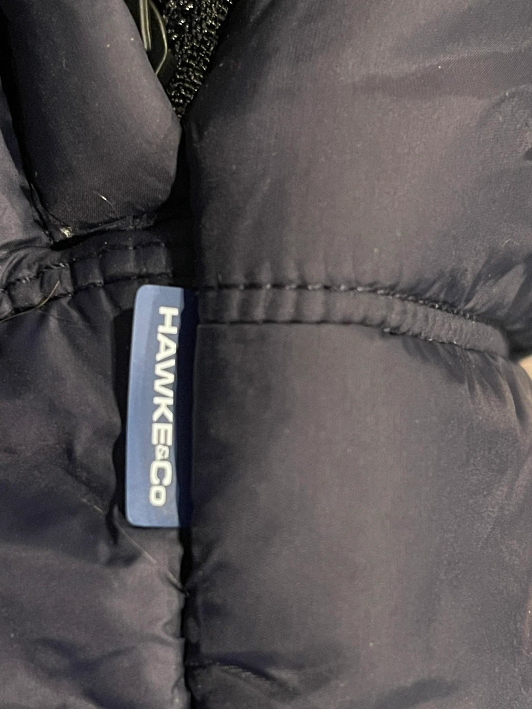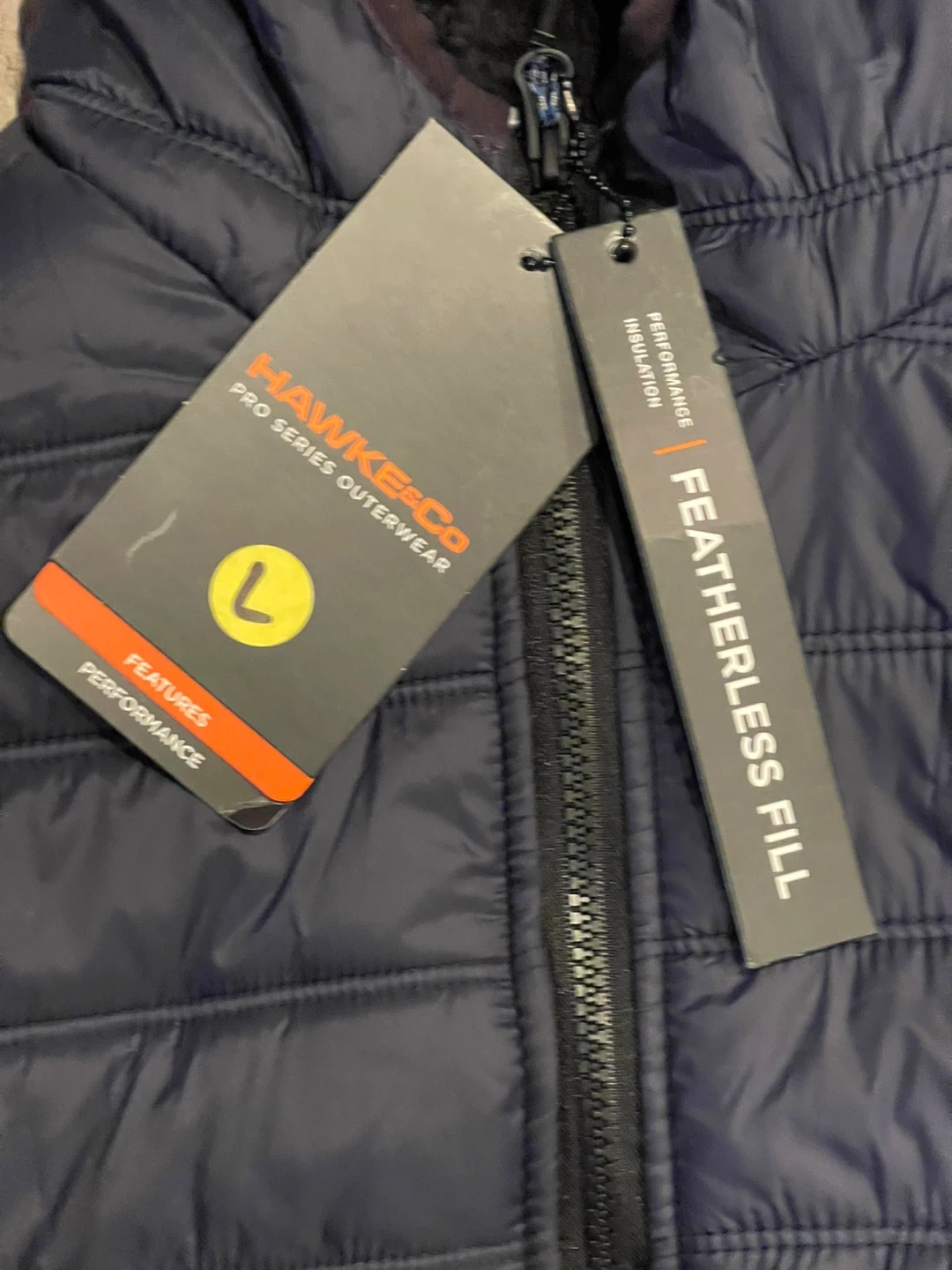 This is a brand new Hawke & Co. puffer jacket, still with tags! It's a size large and features featherless fill for performance insulation. Perfect for staying warm and stylish!
