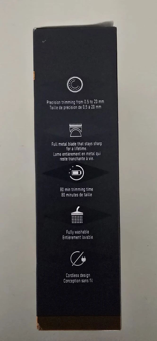 Beard Trimmer Pro with full metal blade. Precision trimming from 0.5 to 20 mm. Features 40 length settings and 80 minutes of trimming time. It's fully washable and cordless.
