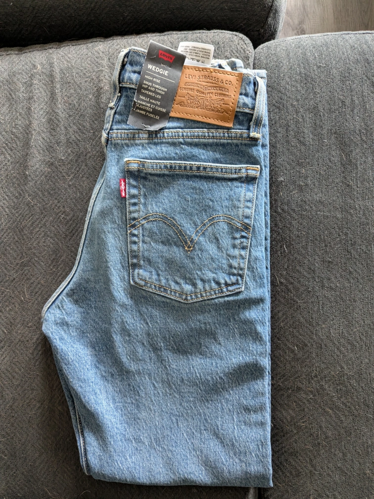 Brand new tags on levi's Premium Wedgie jeans are now available! These jeans offer a high rise and are designed to flatter your figure. brand new with tags size 24 waist