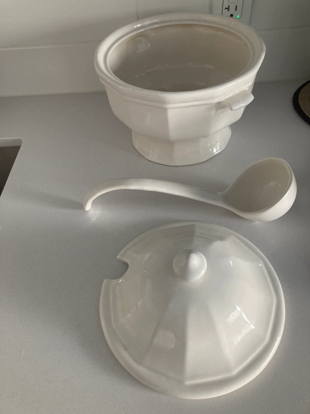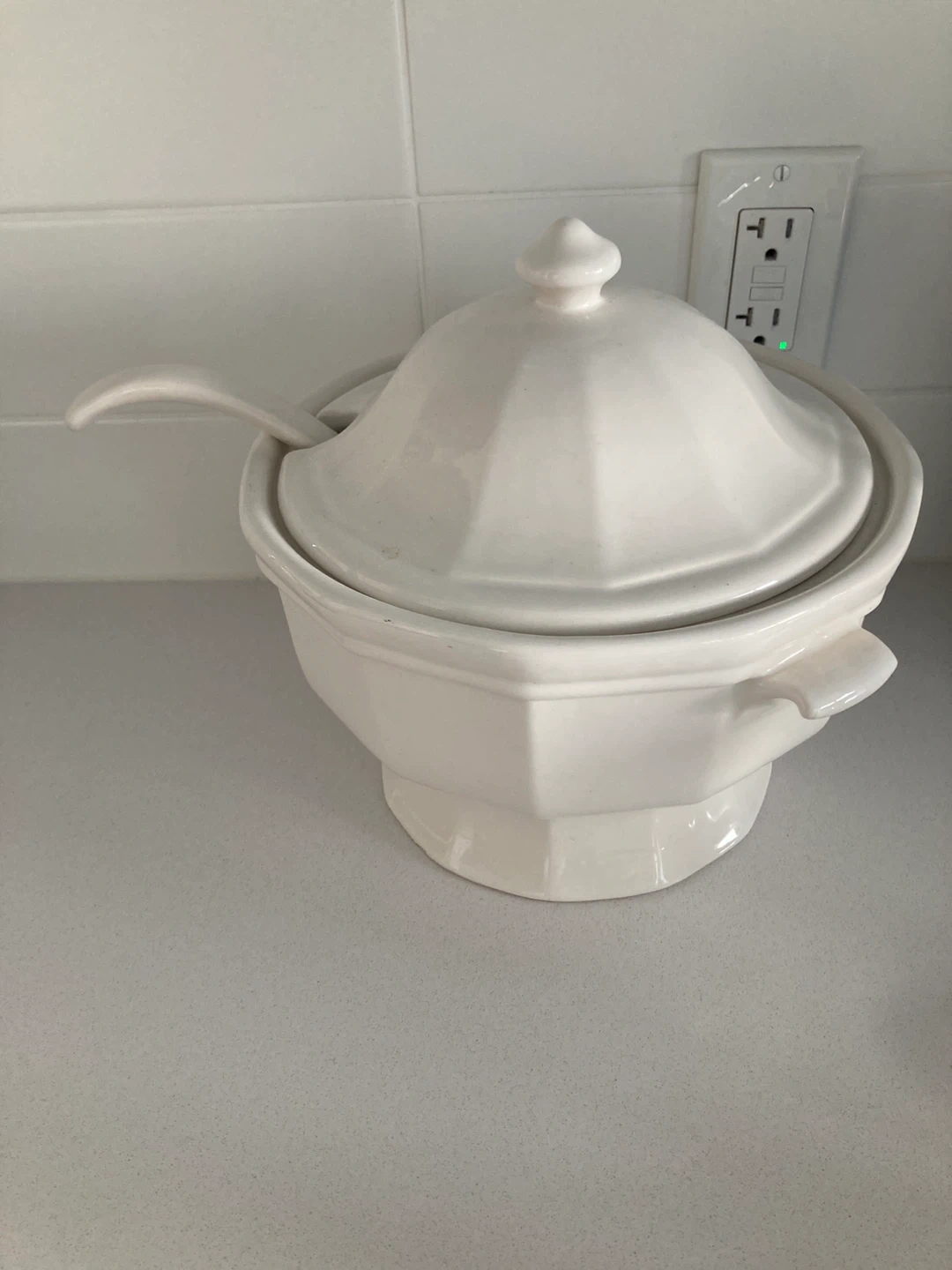 White Ceramic Soup Tureen with Ladle
