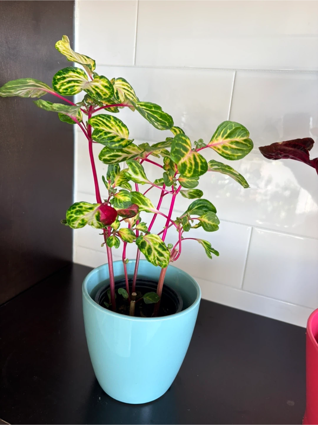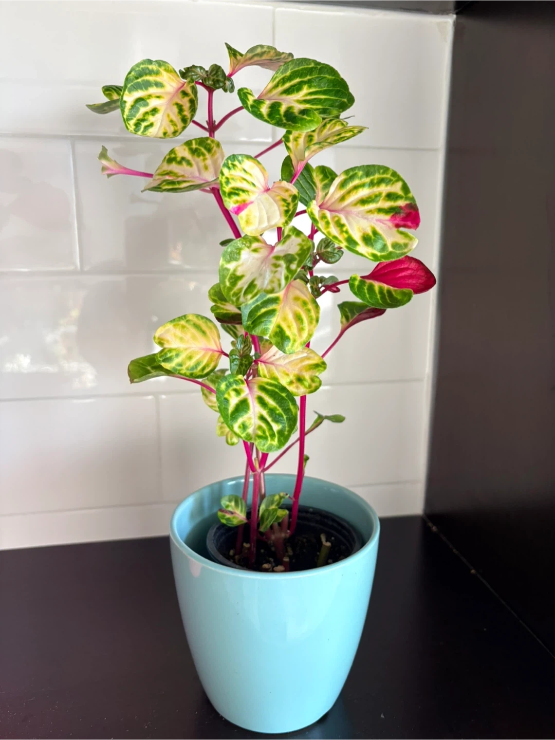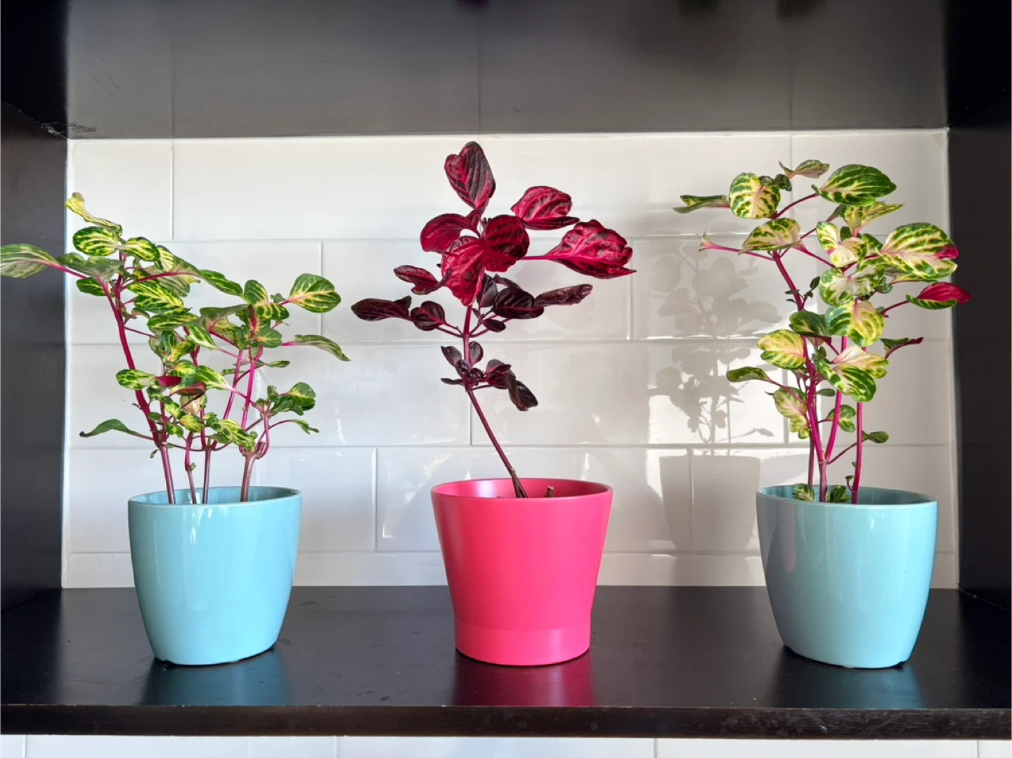 Three vibrant plants in colourful ceramic pots. Two light blue pots and one bright pink pot, each housing a unique leafy Iresine plant. These plants add a splash of colour to any space!Price is as below :