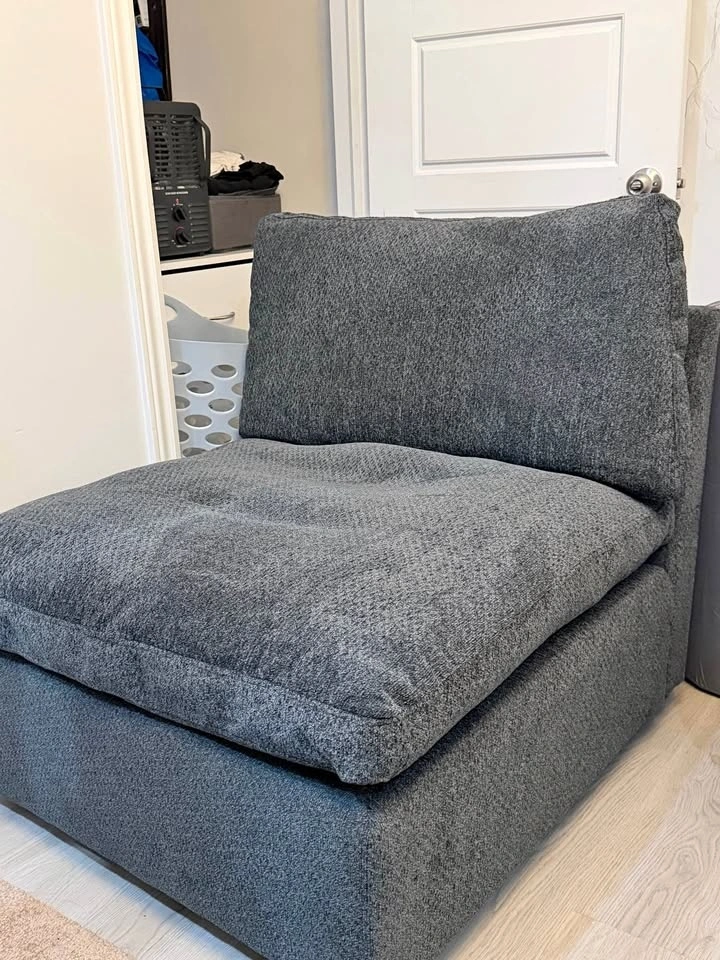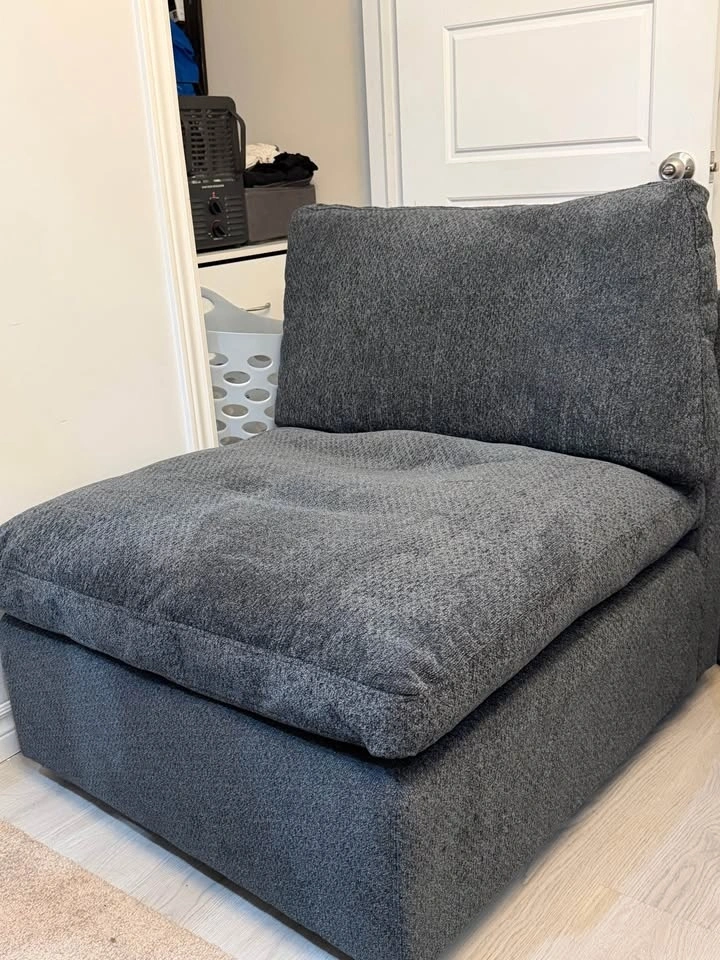 Selling a brand new grey lounge chair / floor sofa. I just assembled it but it doesn’t fit in my space, so I’m selling it. Never used, in perfect condition. Very comfortable with thick cushions and modern design. Great for relaxing, gaming, reading, or watching TV. Perfect for living room, bedroom, or gaming setup. Pickup available.