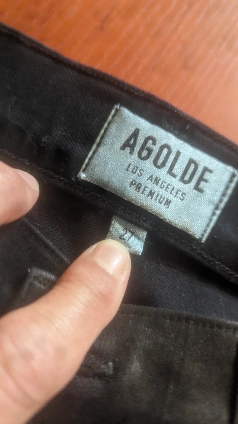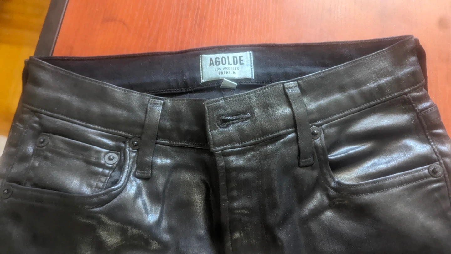 These are AGOLDE black leather pants. Size 27. They're made of premium material. Perfect for a night out!