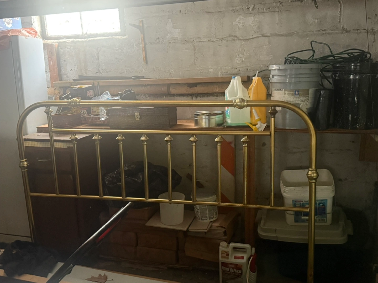 Vintage brass headboard. Full size. Some discoloration. Great for restoration project.