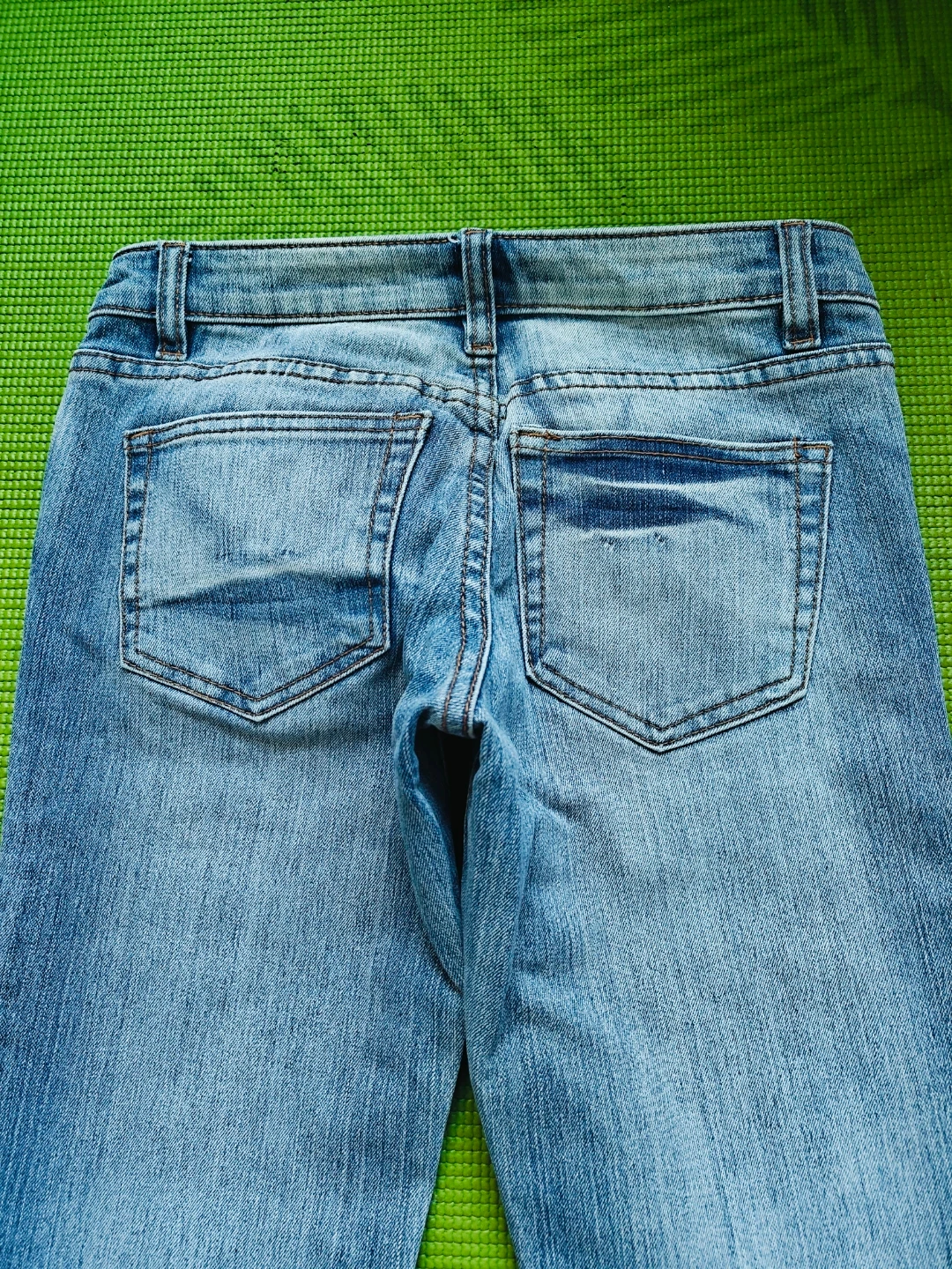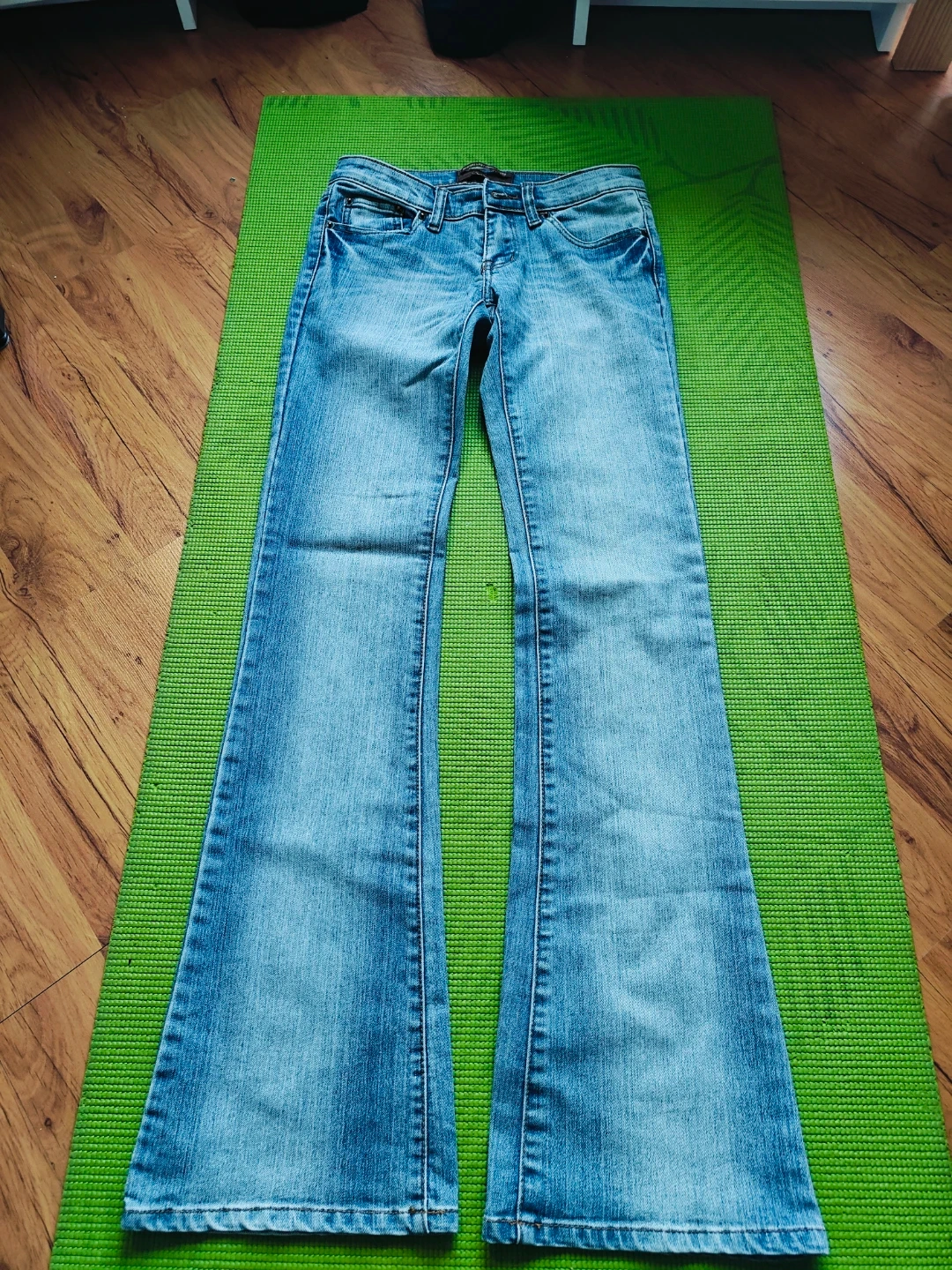 Selling a pair of light wash bootcut jeans. No tears, no stains, They're in impeccable condition and ready for a new home!