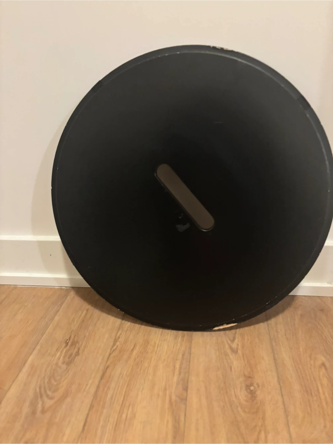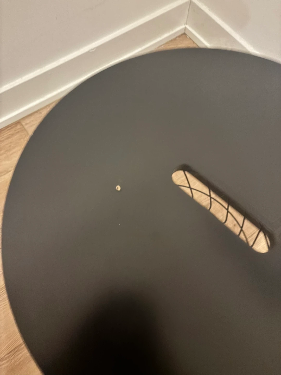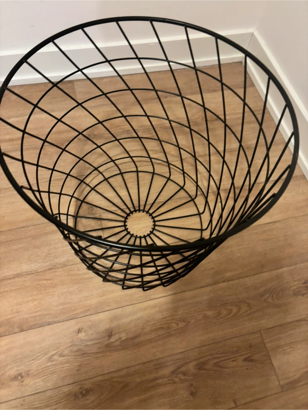 This black IKEA KVISTBRO is a stylish storage table. It has a lid and a metal wire basket base. Diameter is 44 cm and height is 42 cm. It's great for keeping things tidy!