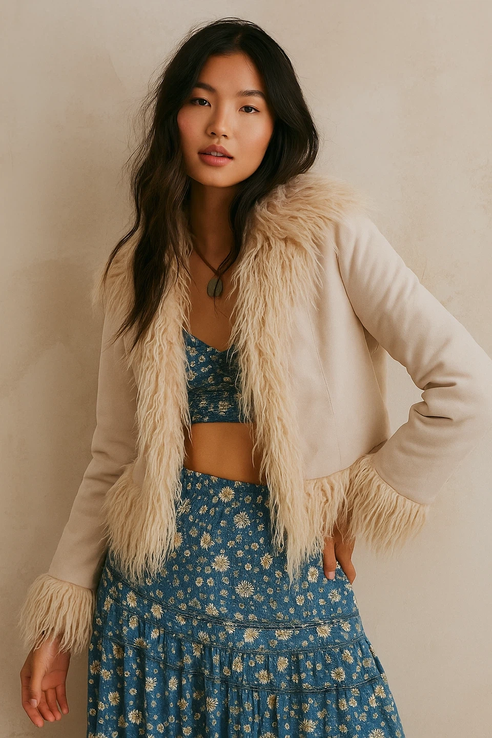 This H&M jacket features a stylish cream colour with faux fur trim.