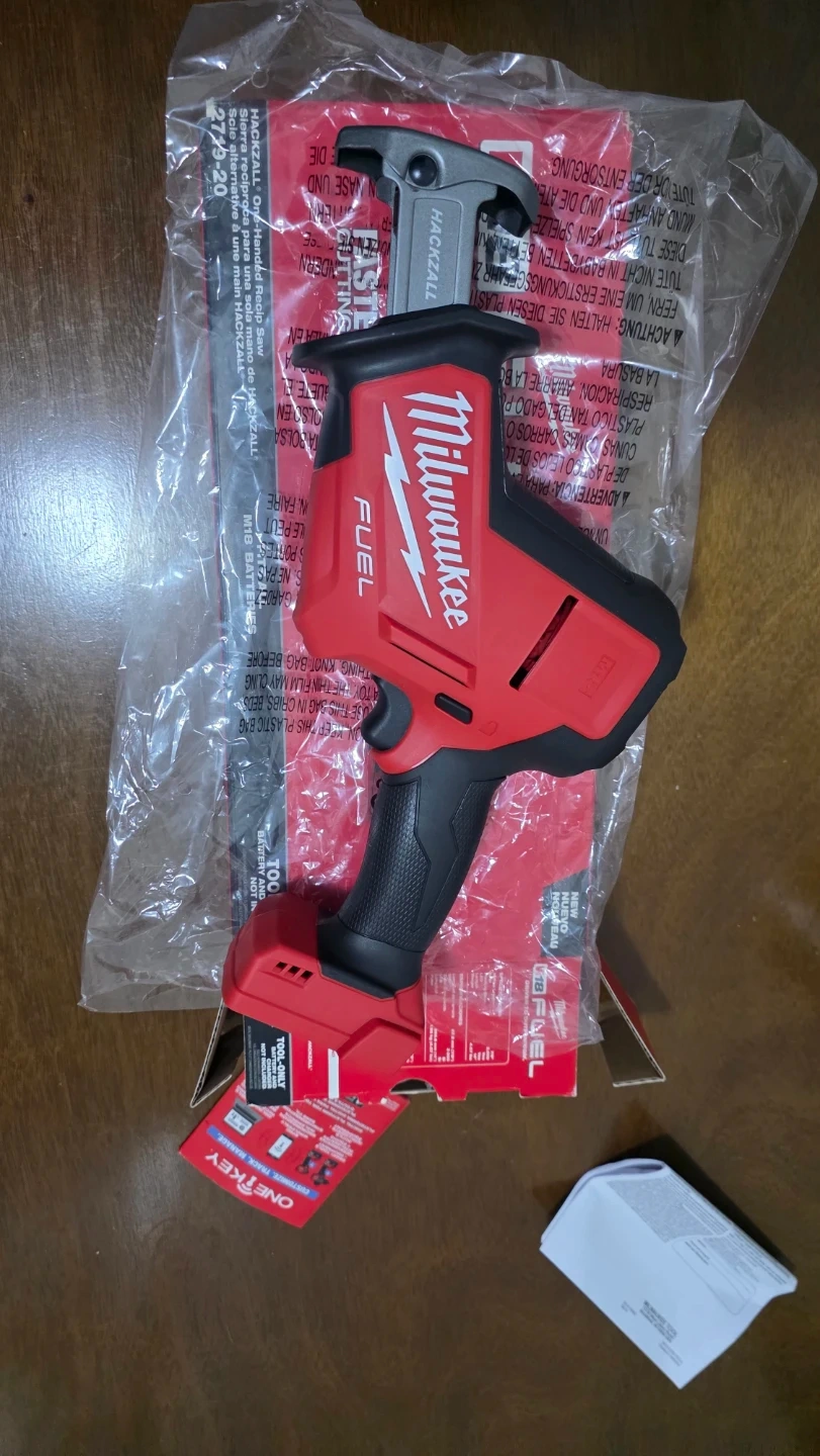 This is a Milwaukee M18 FUEL HACKZALL reciprocating saw. It's a cordless tool designed for efficient cutting. It's designed for one-handed operation. it doesn't have a battery...