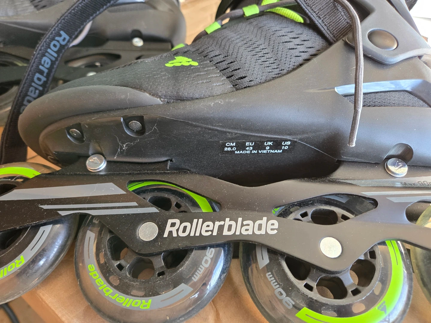 Selling a pair of Rollerblade Macroblade 90 inline skates in excellent condition. These are high-performance fitness skates, perfect for someone looking for more speed and a smoother ride than standard blades.