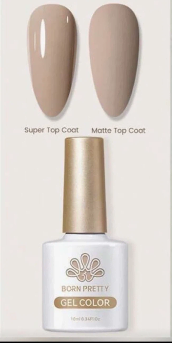 This is Born Pretty Gel Color nail polish in a 10ml bottle. It's a gel formula that requires curing under a UV/LED lamp. This shade is a neutral beige, perfect for everyday wear or as a base for nail art. This bottle contains 0.34 Fl.Oz.