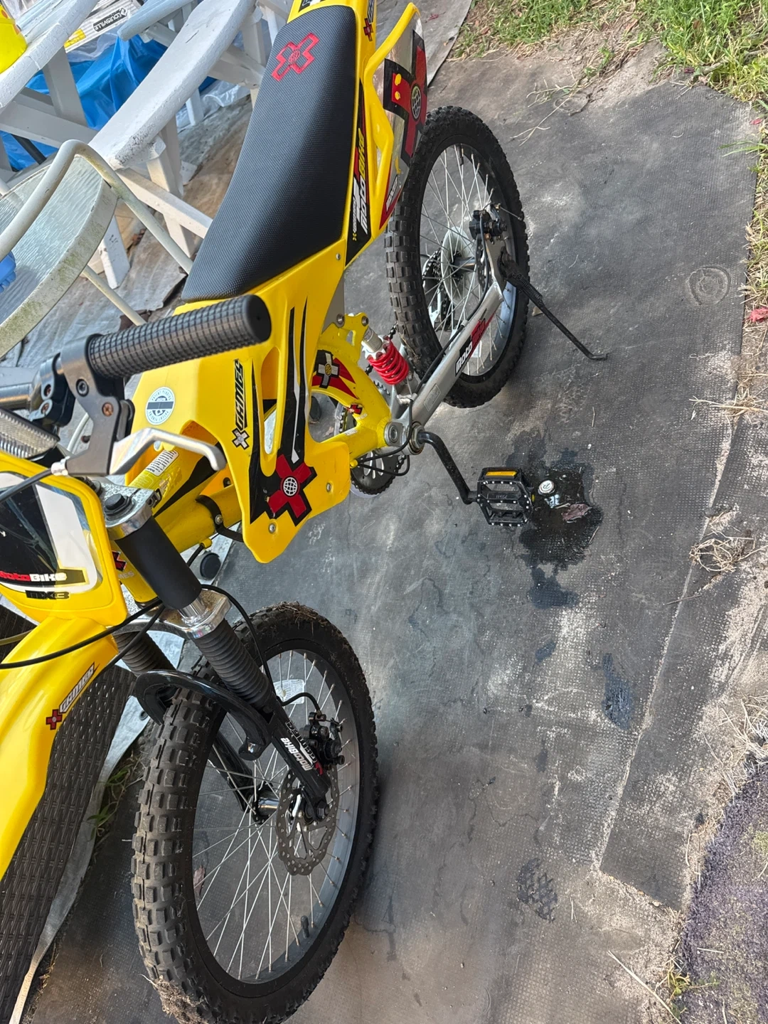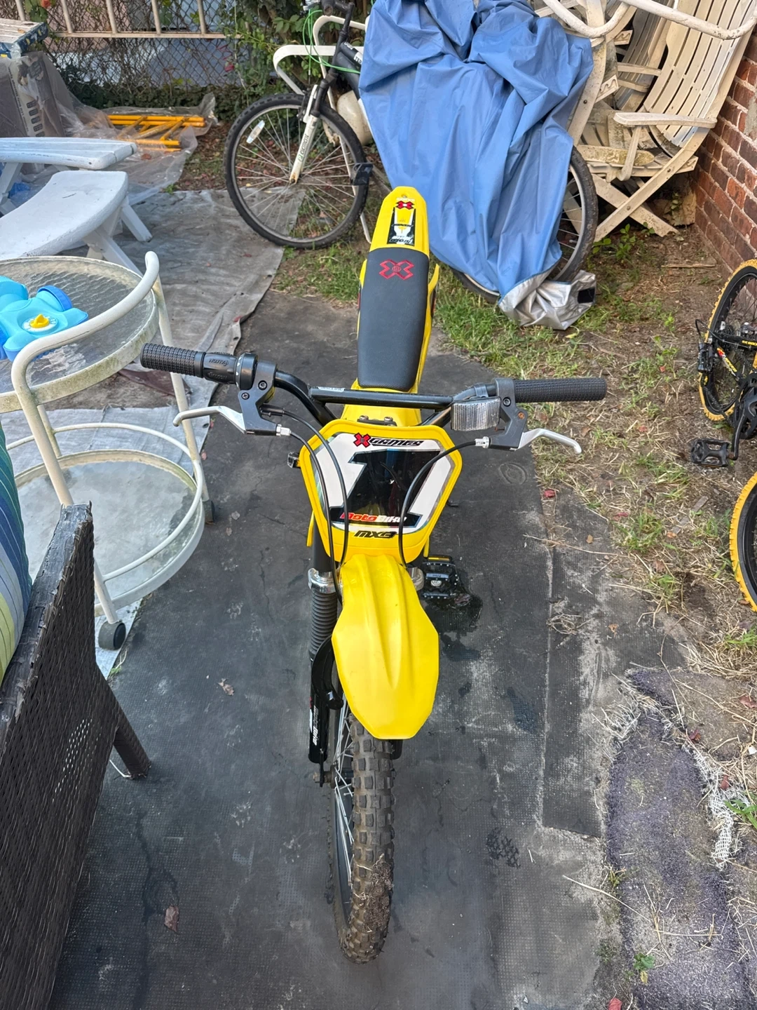 Selling a yellow X-Raider Moto Bike. It's in good condition and ready for a new home! Perfect for kids who love adventure and the outdoors. The bike has a cool design and sturdy build, making it a fun and safe ride.