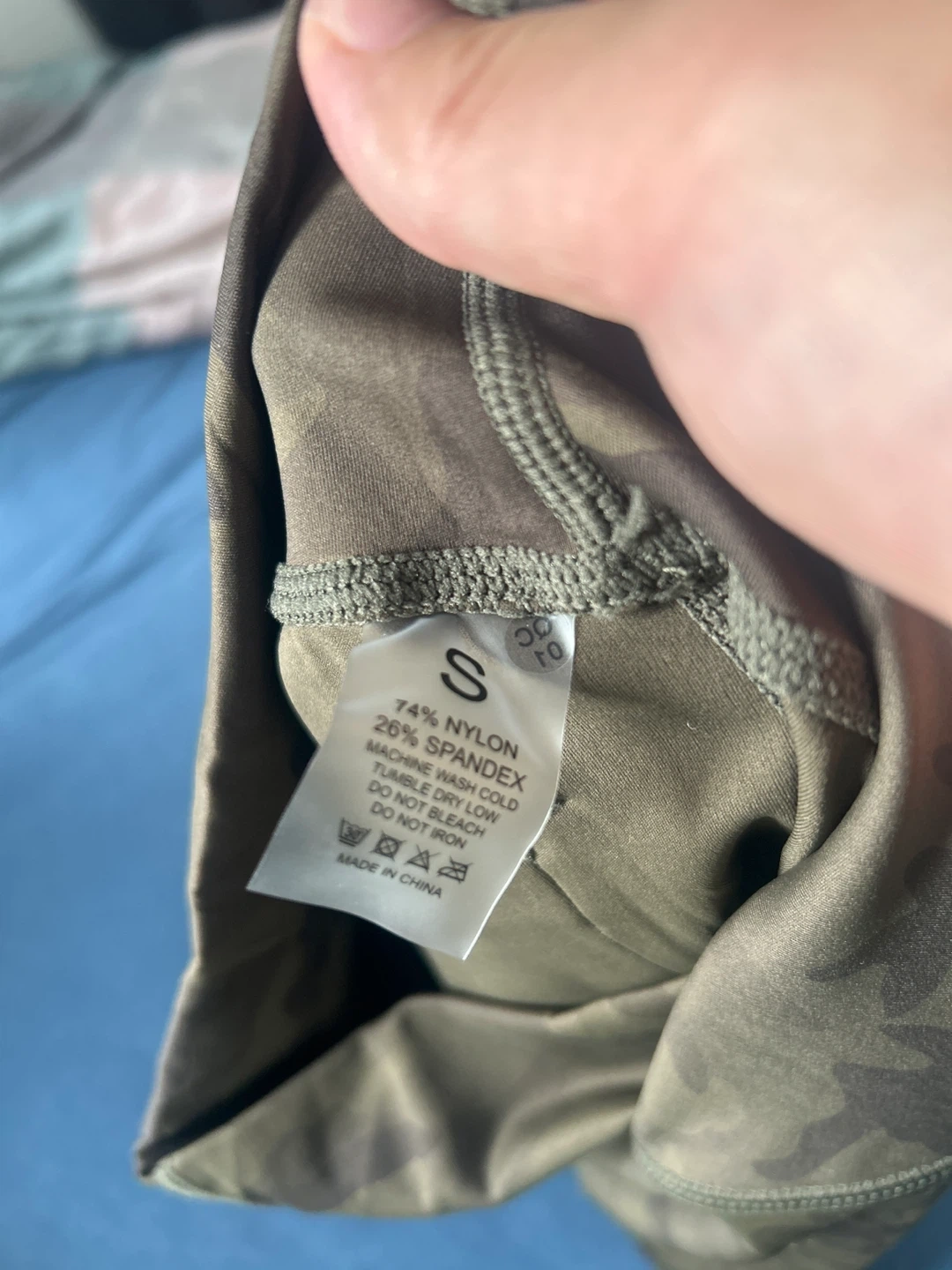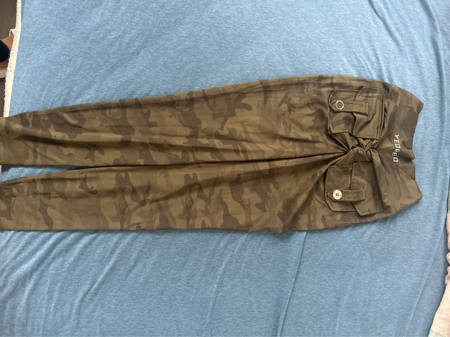 These YEDFRED leggings are size small and feature a camouflage print. They're made of 74% nylon and 26% spandex. Perfect for athletic activities or casual wear!