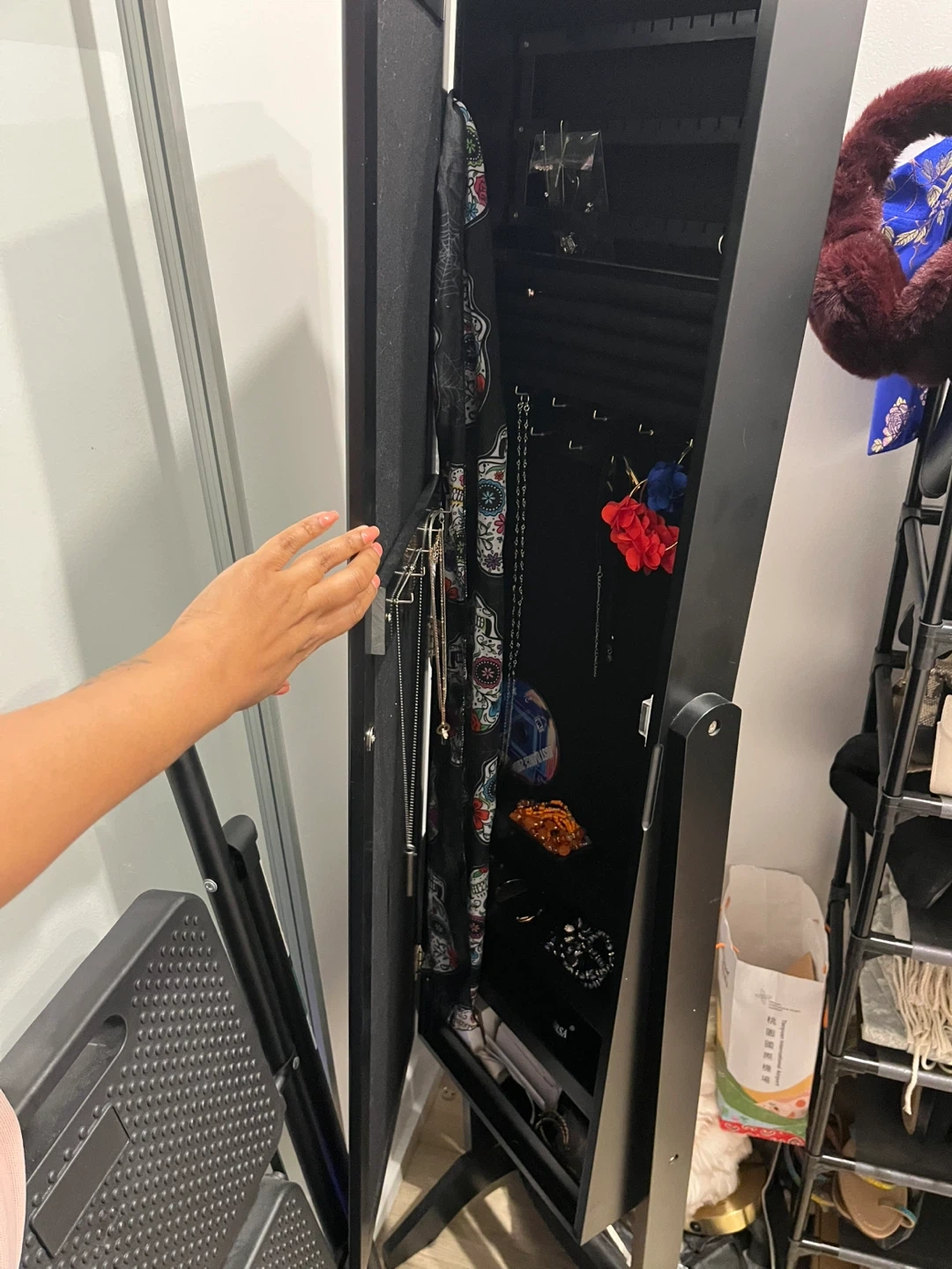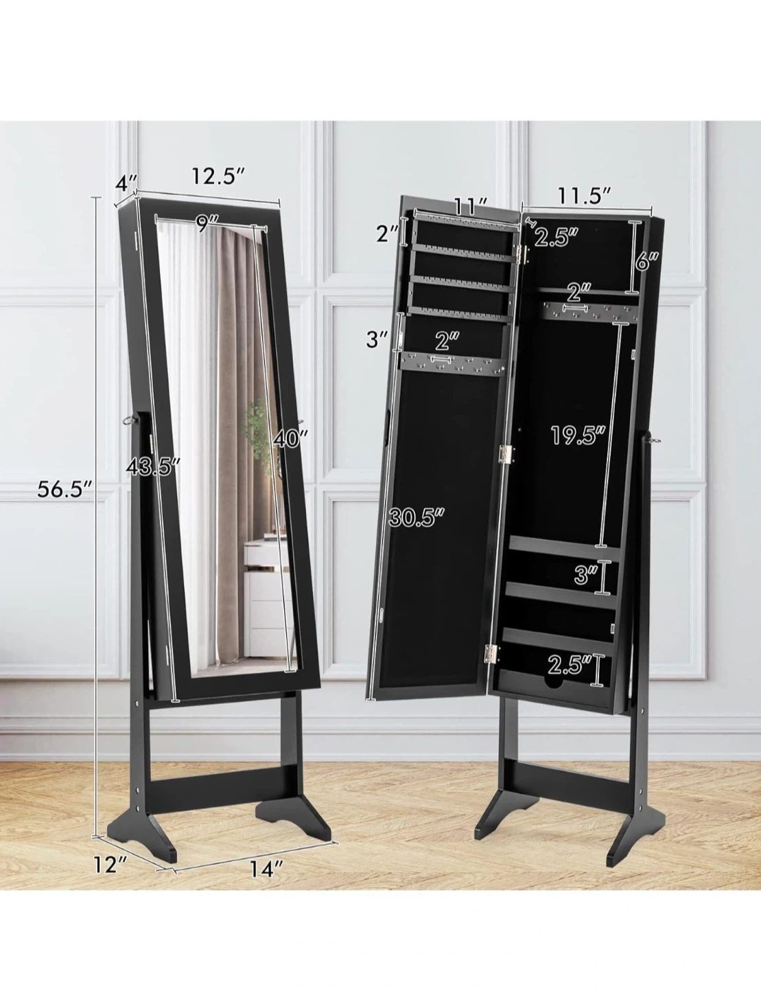 Black Full-Length Mirror Jewelry Cabinet with Stand