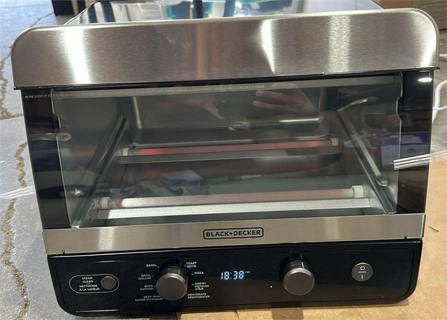 New in a generic box, fully working and complete. Pickup is near Kipling and Evans. Enjoy deep-fried taste without the fat with Air Fry Technology. Features 8 functions: Bake, Broil, Toast, Air Fry, Dehydrate, Pizza, Bagel, and Keep Warm. Neat ‘N Clean Technology uses steam for easy cleaning. Sleek design takes up less counter space while still fitting a 9x13” baking pan (without handles), a 12” pizza, or up to 6 slices of toast. Dishwasher safe accessories for easy cleanup.