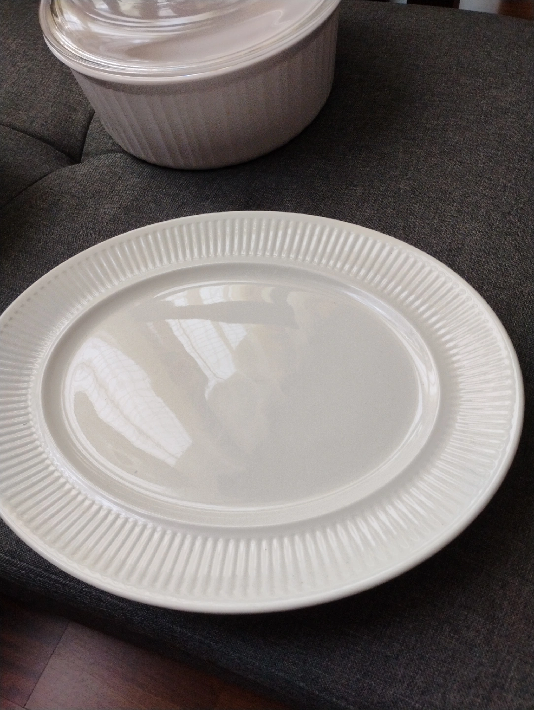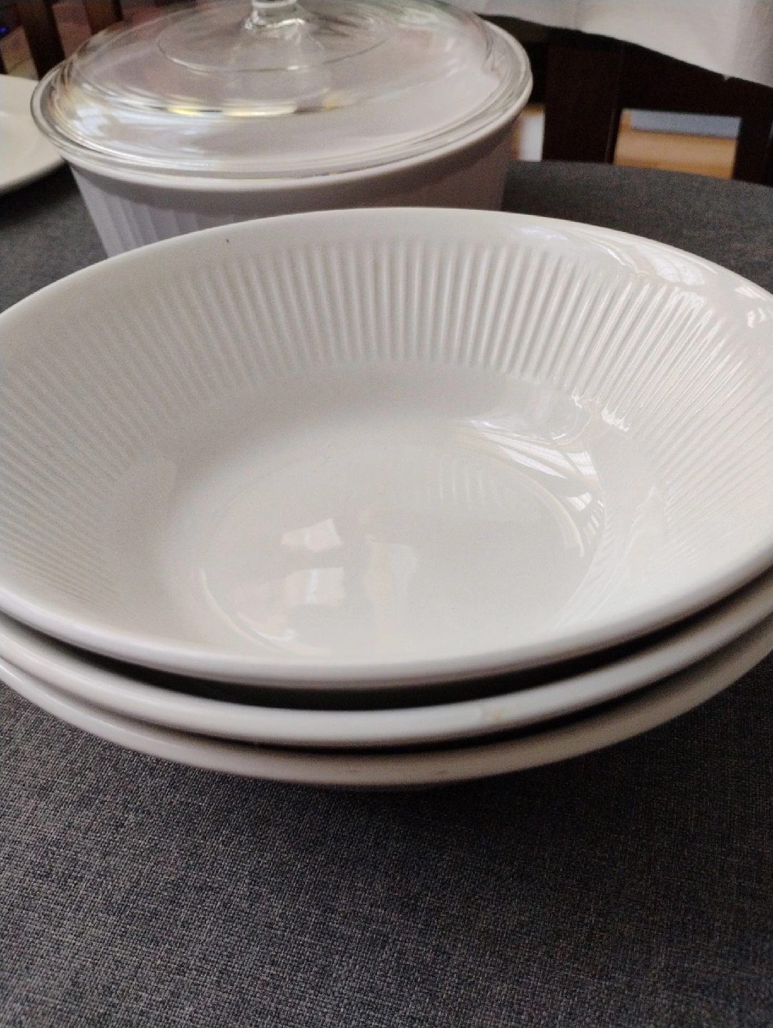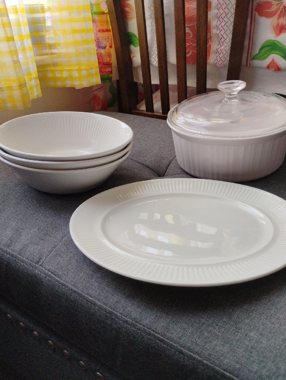 Selling a set of Johnson Bros Athena Ironstone dishes. Includes 3 serving bowls, a platter, creamer, and a large covered casserole dish. made in England. These dishes are in great condition, no damage and ready for a new home
