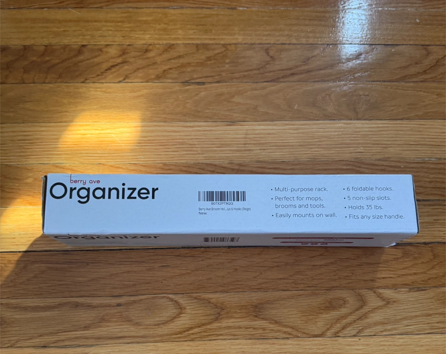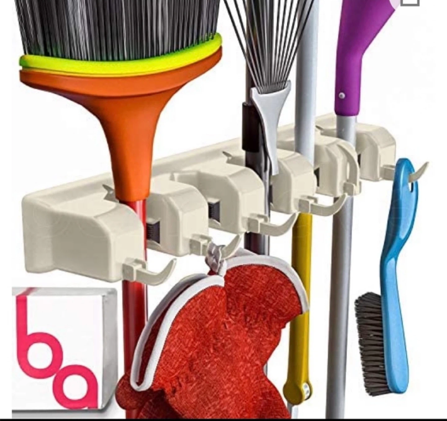 Broom Holder Wall Mount and Garden Tool Organizer, Closet Storage, Kitchen Rack, Home Organization and Garage Organizer for Rake or Mop Handles Up to 1.25-Inches, Hanger Plus 6 Hooks (BEIGE, 1 PACK)