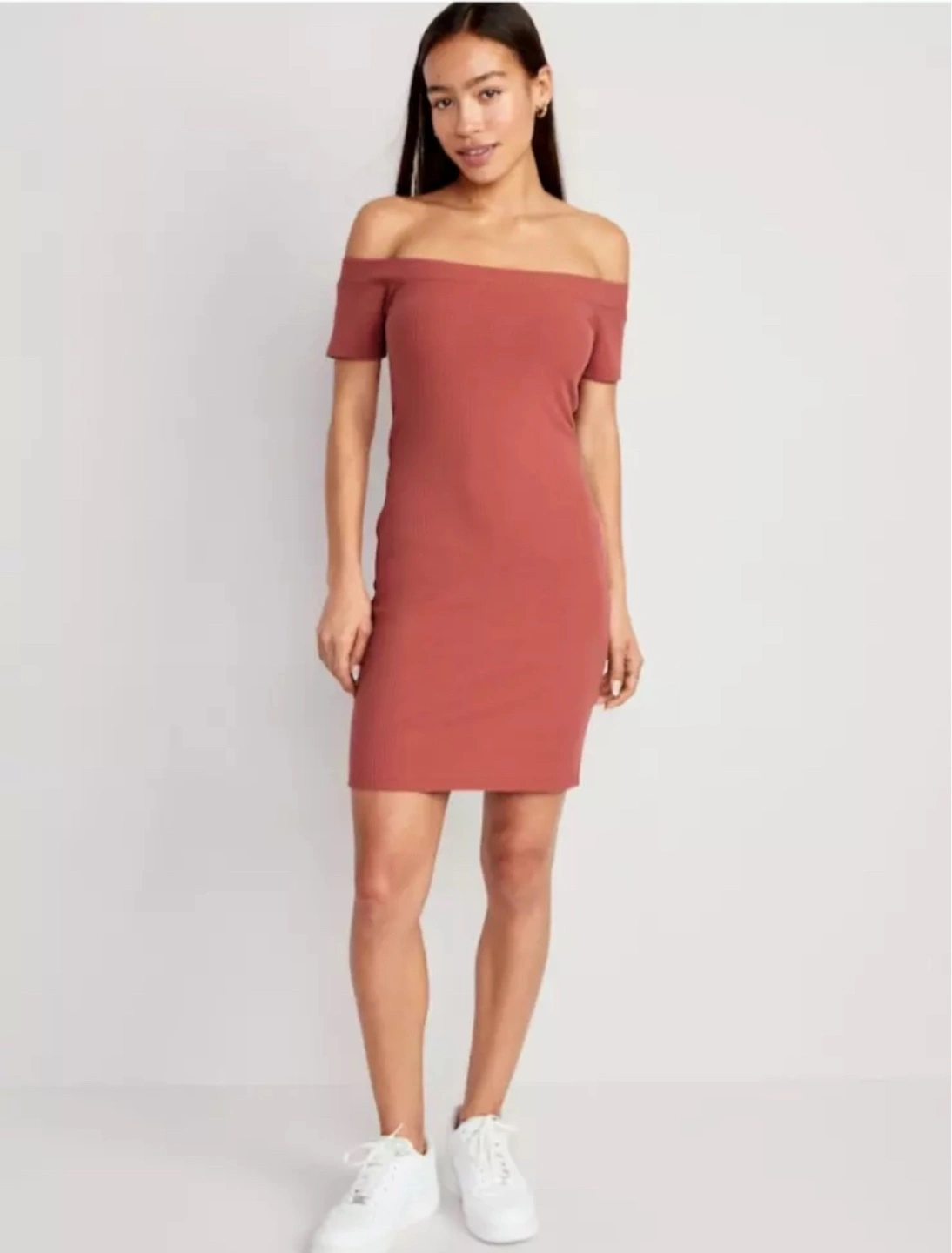 NWOT Old Navy Fitted Off-the-Shoulder Rib-Knit Mini Dress Sz S