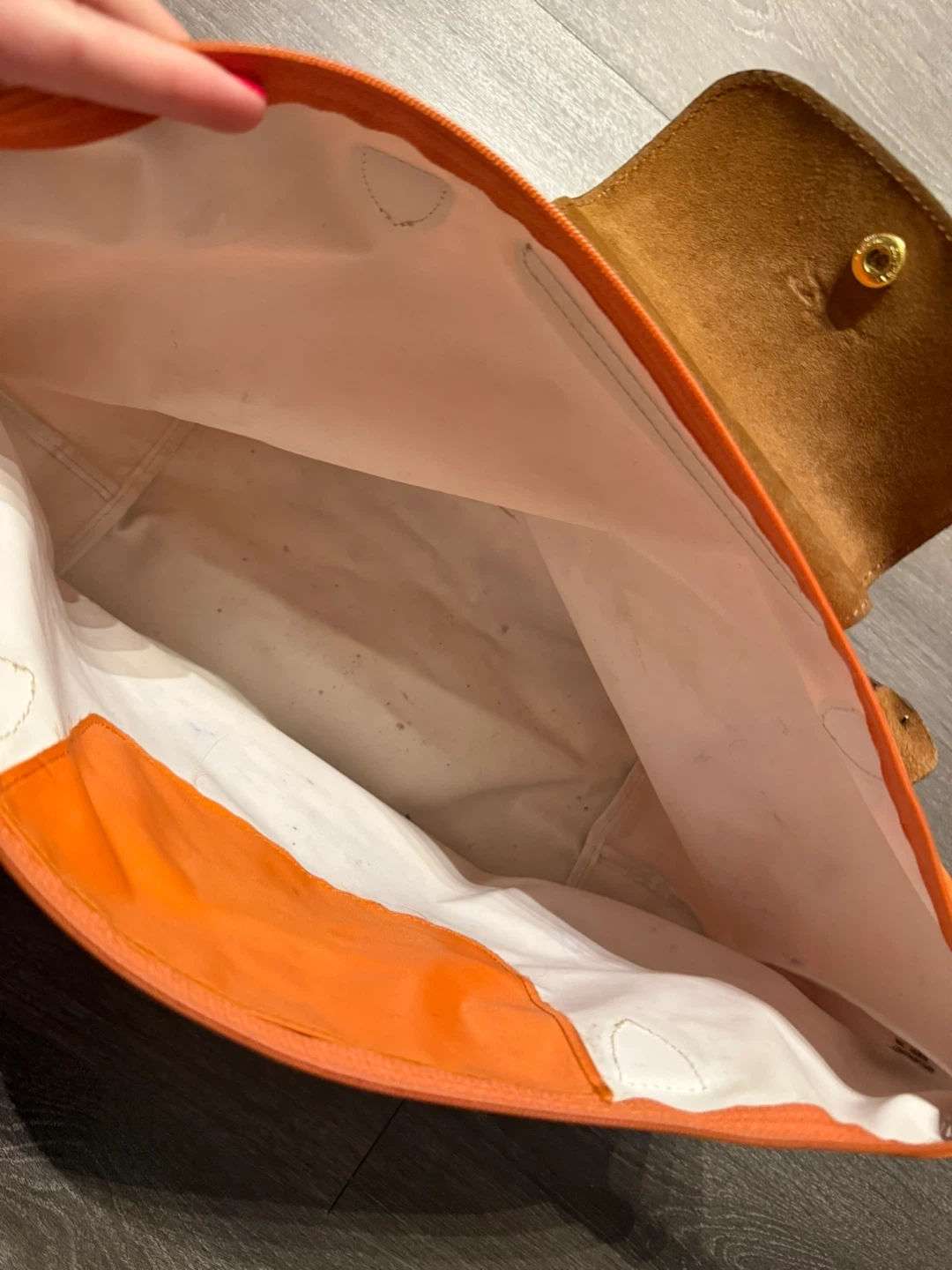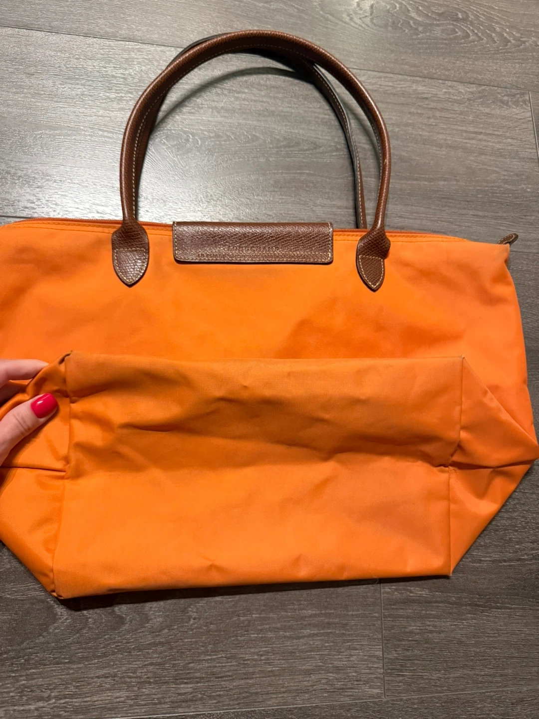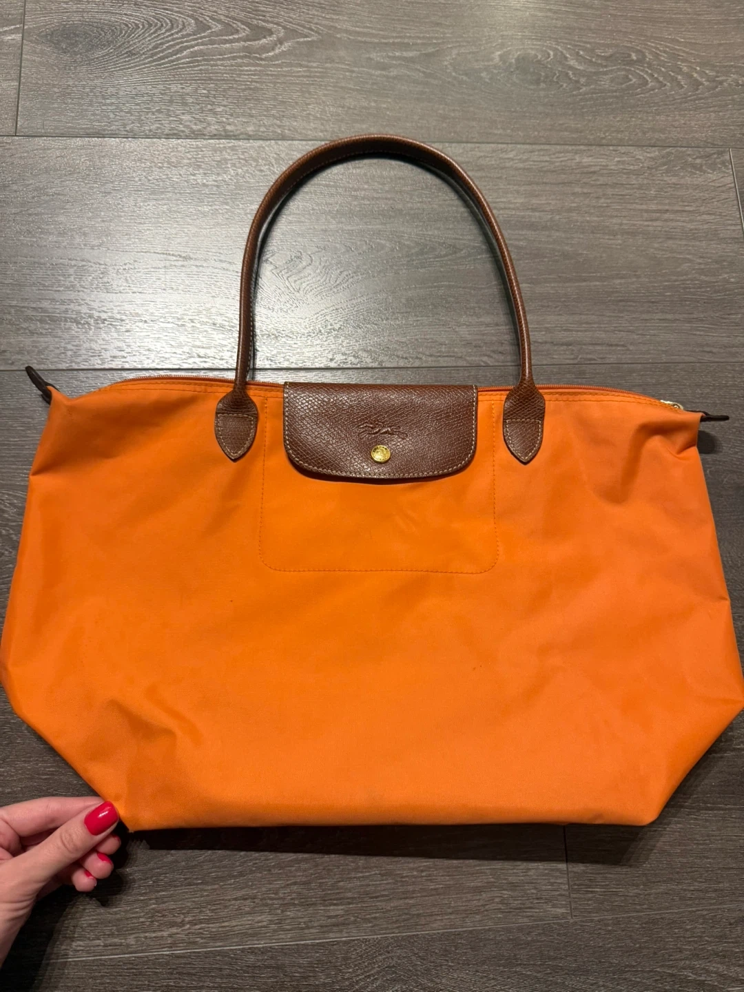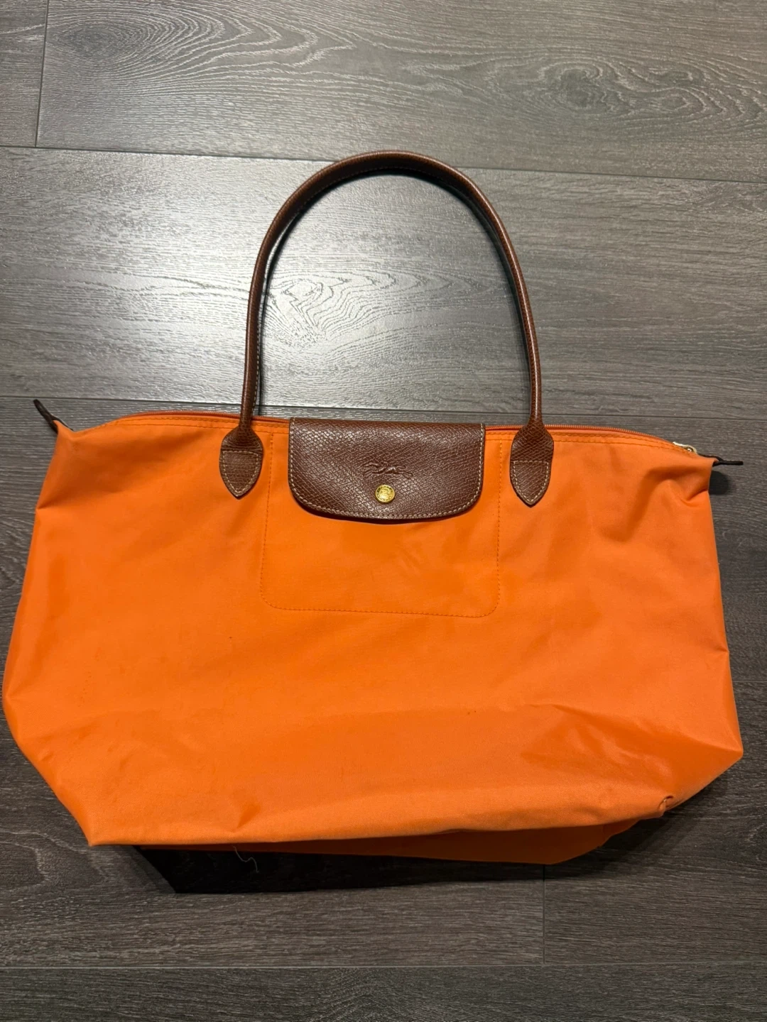 Selling a Longchamp tote bag in a lovely orange colour! It's perfect for everyday use or travel. There are some signs of wear, as shown in the photos, but it's still in good condition and has lots of life left in it