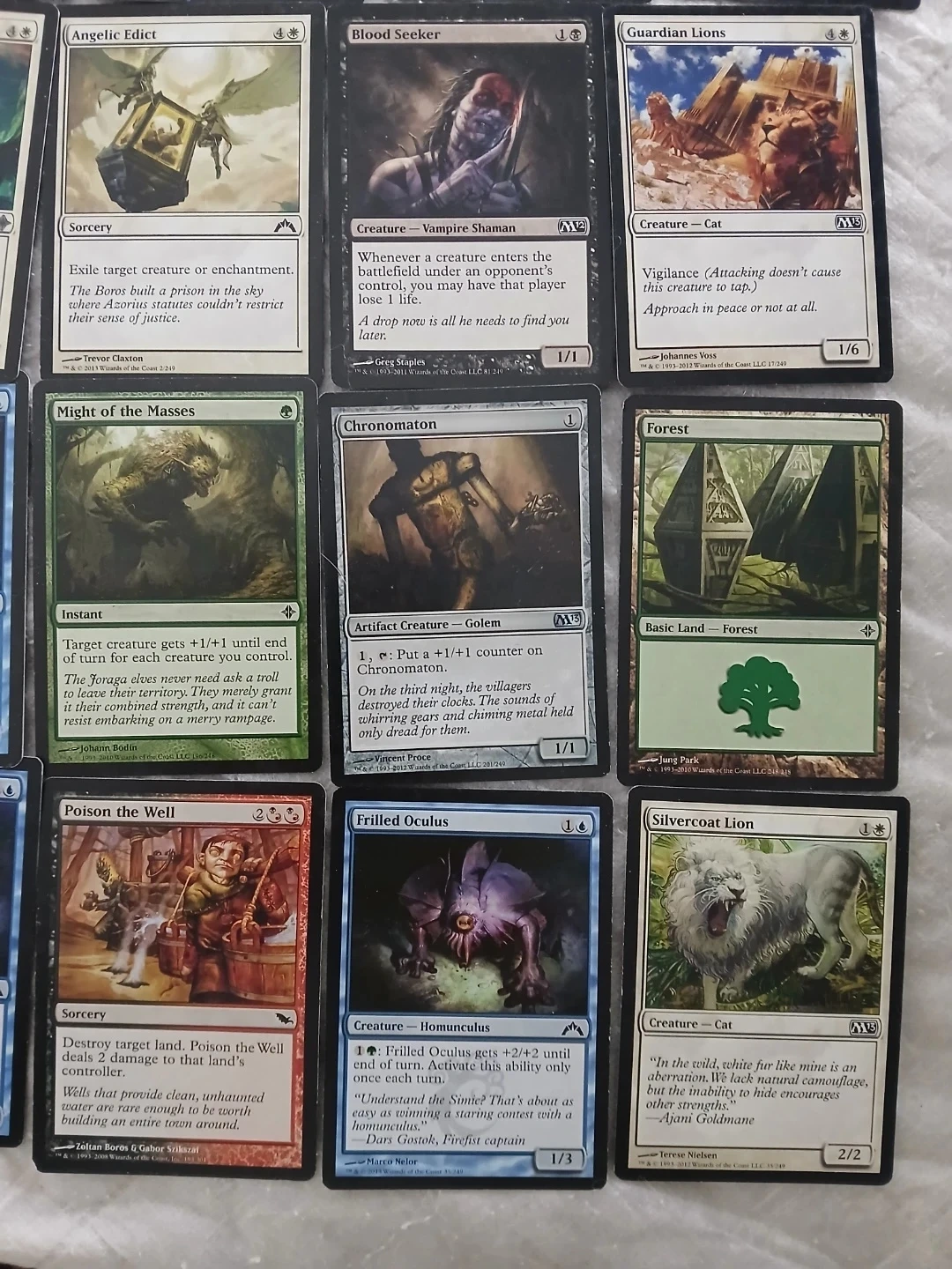 Collection of various Magic: The Gathering trading cards. Includes a mix of creatures, spells, and lands. Cards are in good condition for gameplay. This lot is great for players looking to expand their collection or find specific cards.