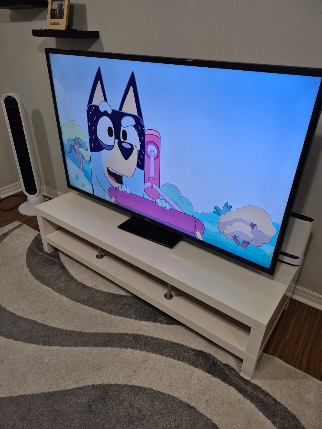 Samsung TV on White TV Stand