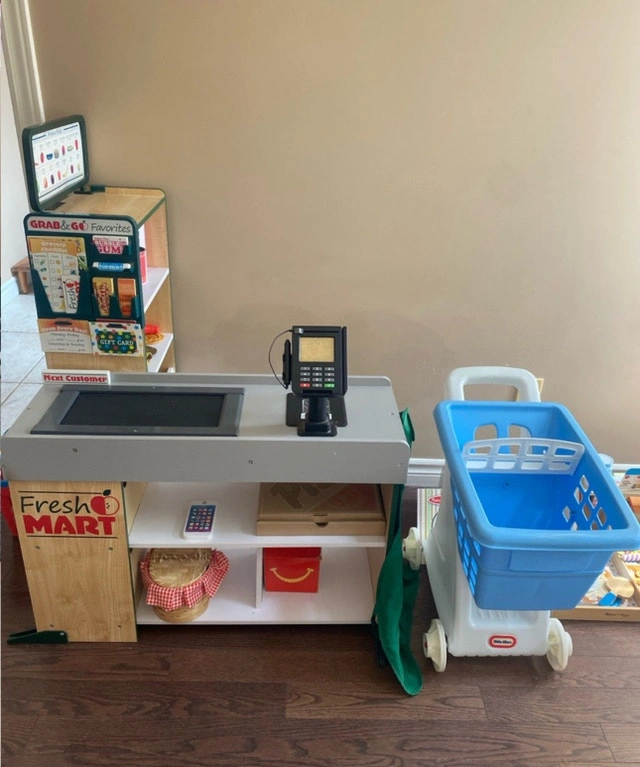 This Step 2 Kitchen is fully stocked and ready for your little chef to explore their culinary talents! While it's been used, it's in great shape and comes with all the accessories you see pictured. Get ready for some imaginative playtime! The other play sets are a Melissa and Doug bakery and a Little Tikes grocery store with accessories. If the ad is up, then yes, it's still available! No need to ask, just imagine the possibilities and reach out to arrange a pick-up time. Based on comparable listings, I'm asking $150. Cash accepted.