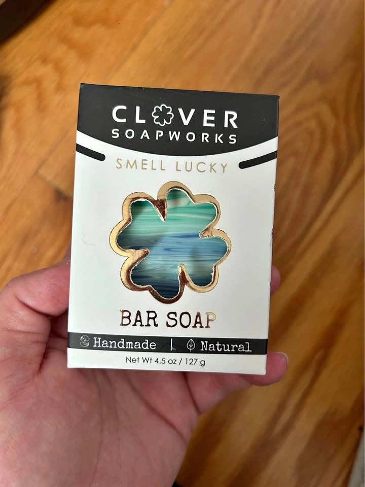 Handmade soap from Clover Soapworks. Fragrance is 'ocean mist + coastal sage,' reminiscent of the Old Spice 'Captain' scent. Pickup in Bushwick near the Myrtle Ave Broadway JMZ stop.