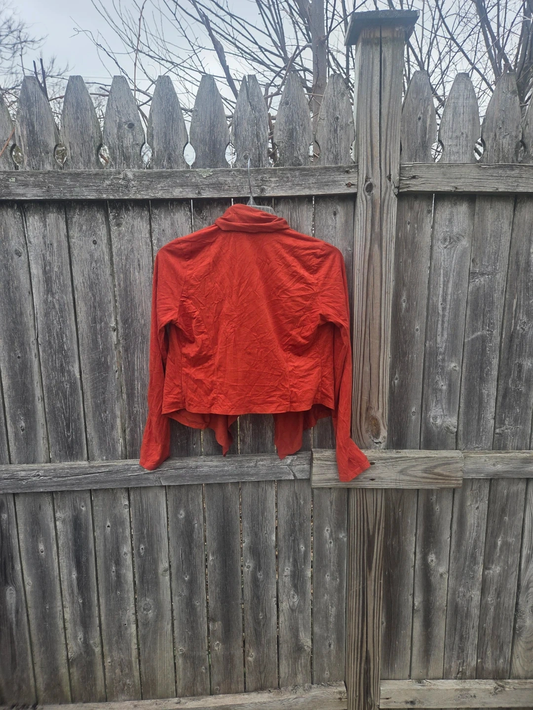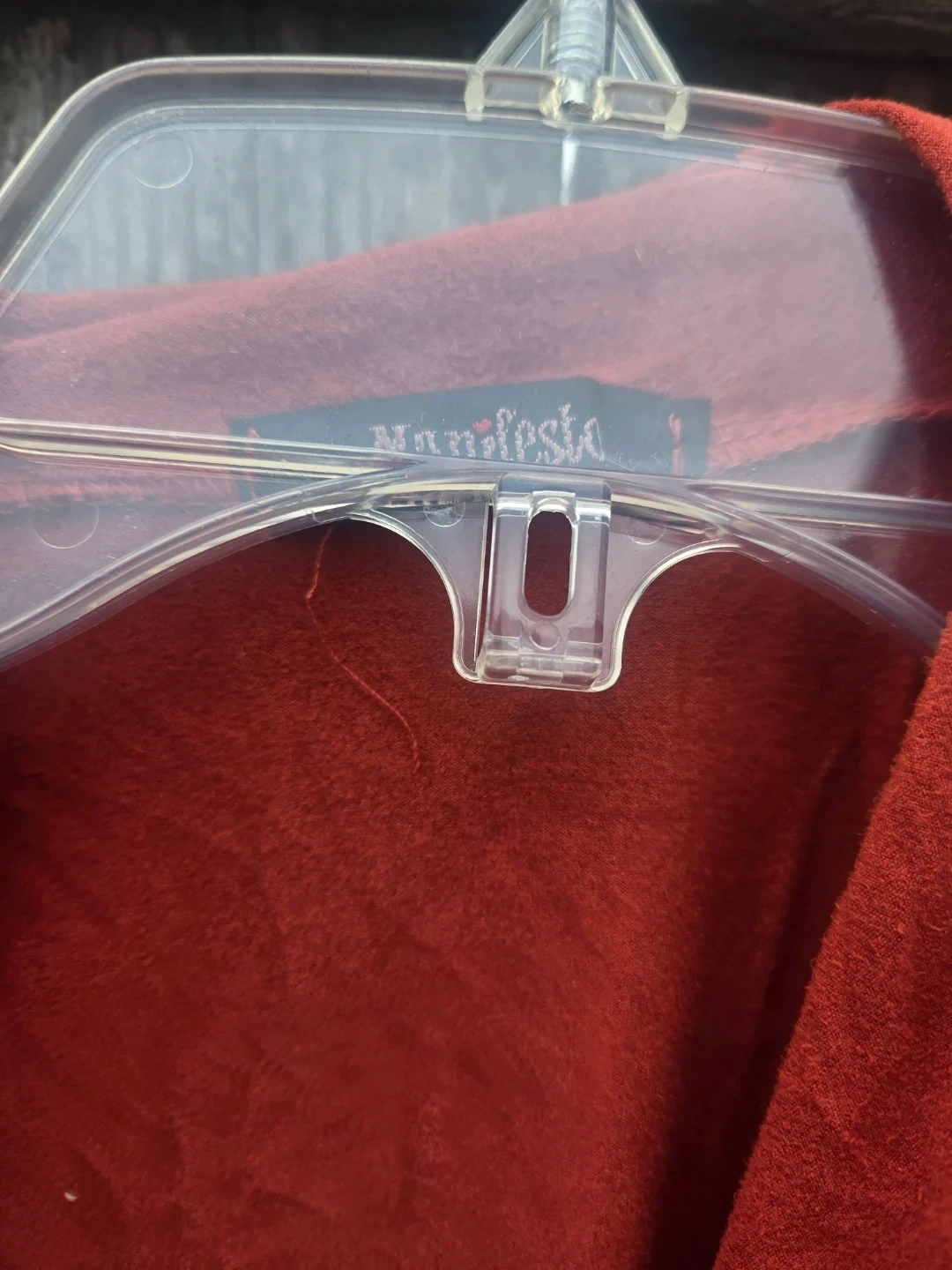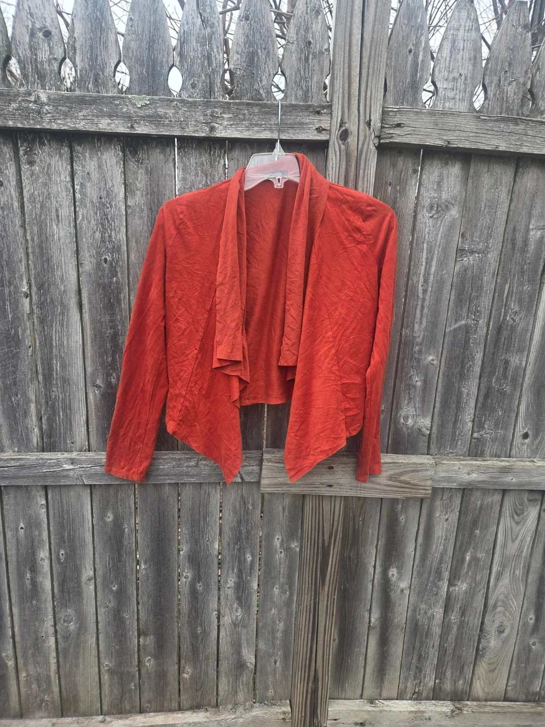 This is a Manifesto red cardigan. It's a lightweight, long-sleeved cardigan with an open front and draped lapels. A great layering piece for any outfit!