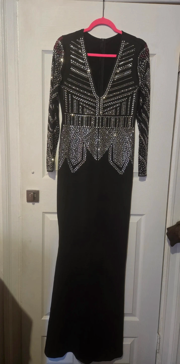 Black Beaded Long Sleeve Mermaid Gown