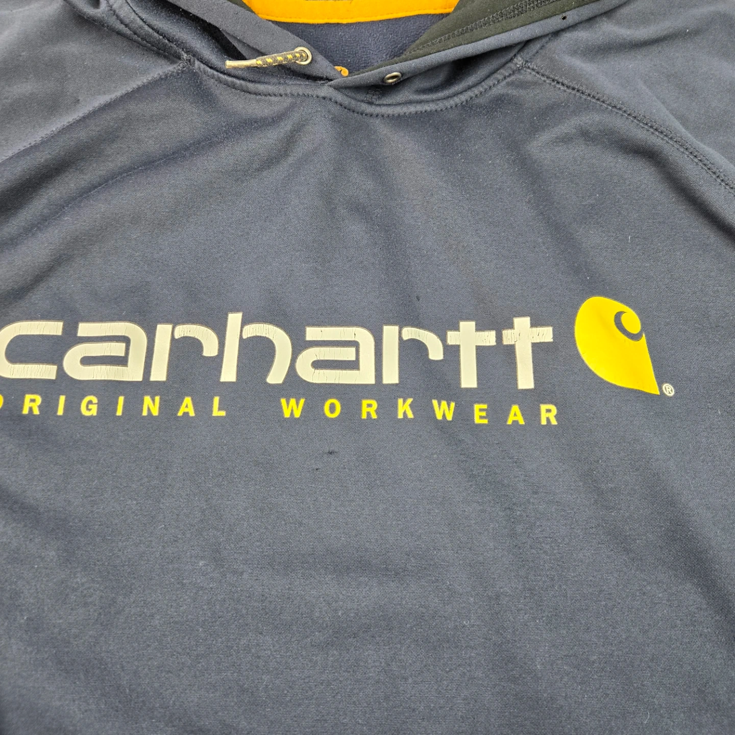 Please note the condition. There's some peeling and marks on the hoodie.