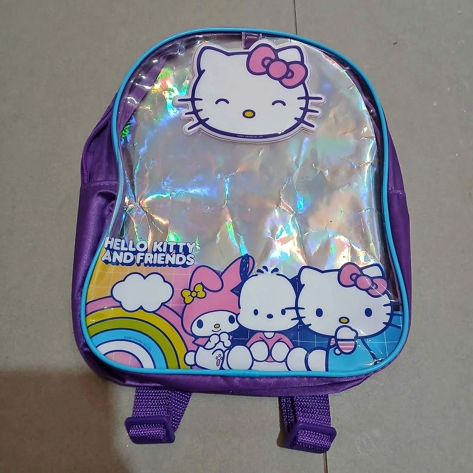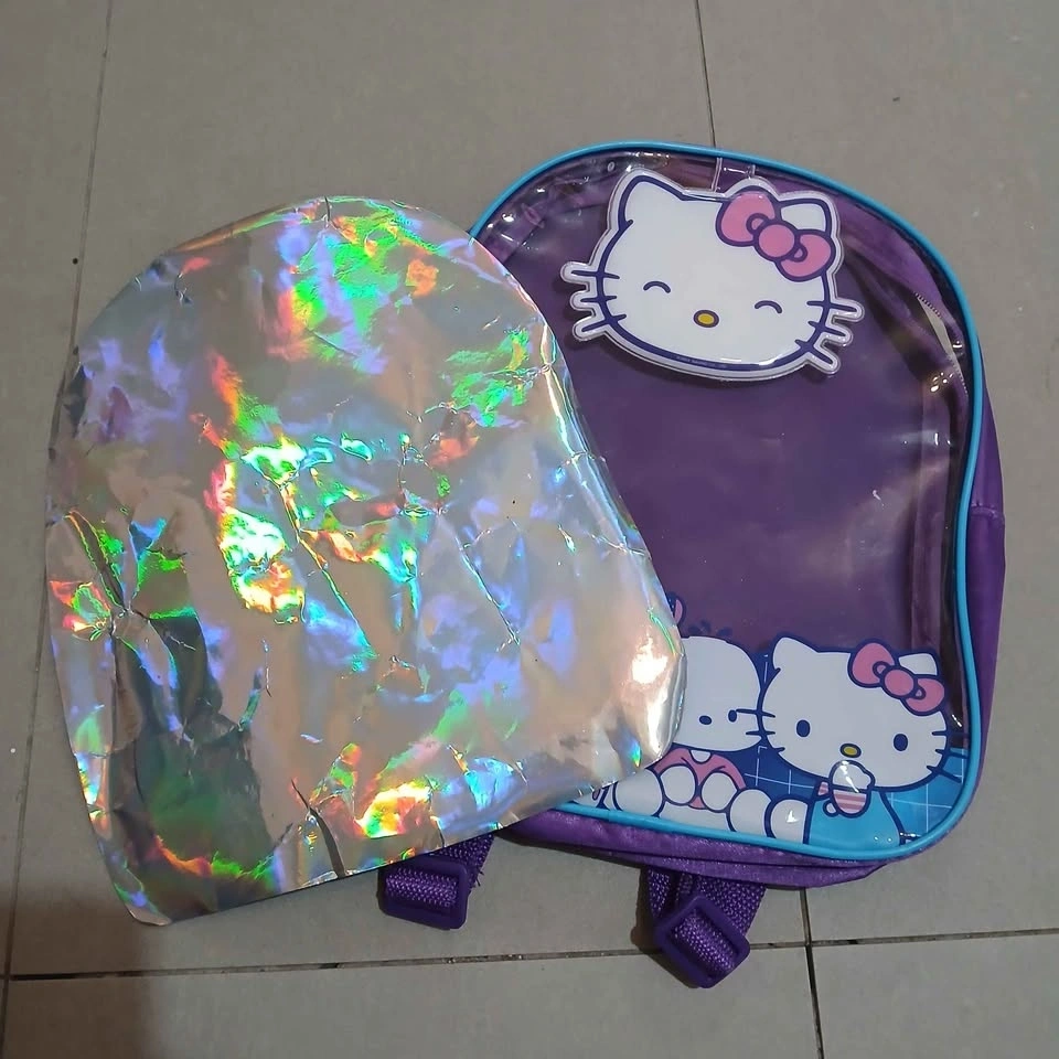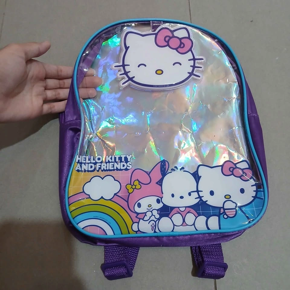 This bag has a holographic paper insert and can possibly be used as an ita bag. Behind the Hello Kitty head is a mirror! Dimensions are 12.1" x 9.1". Pick up before 9PM. Meet up at Pioneer Village Station before 4PM.