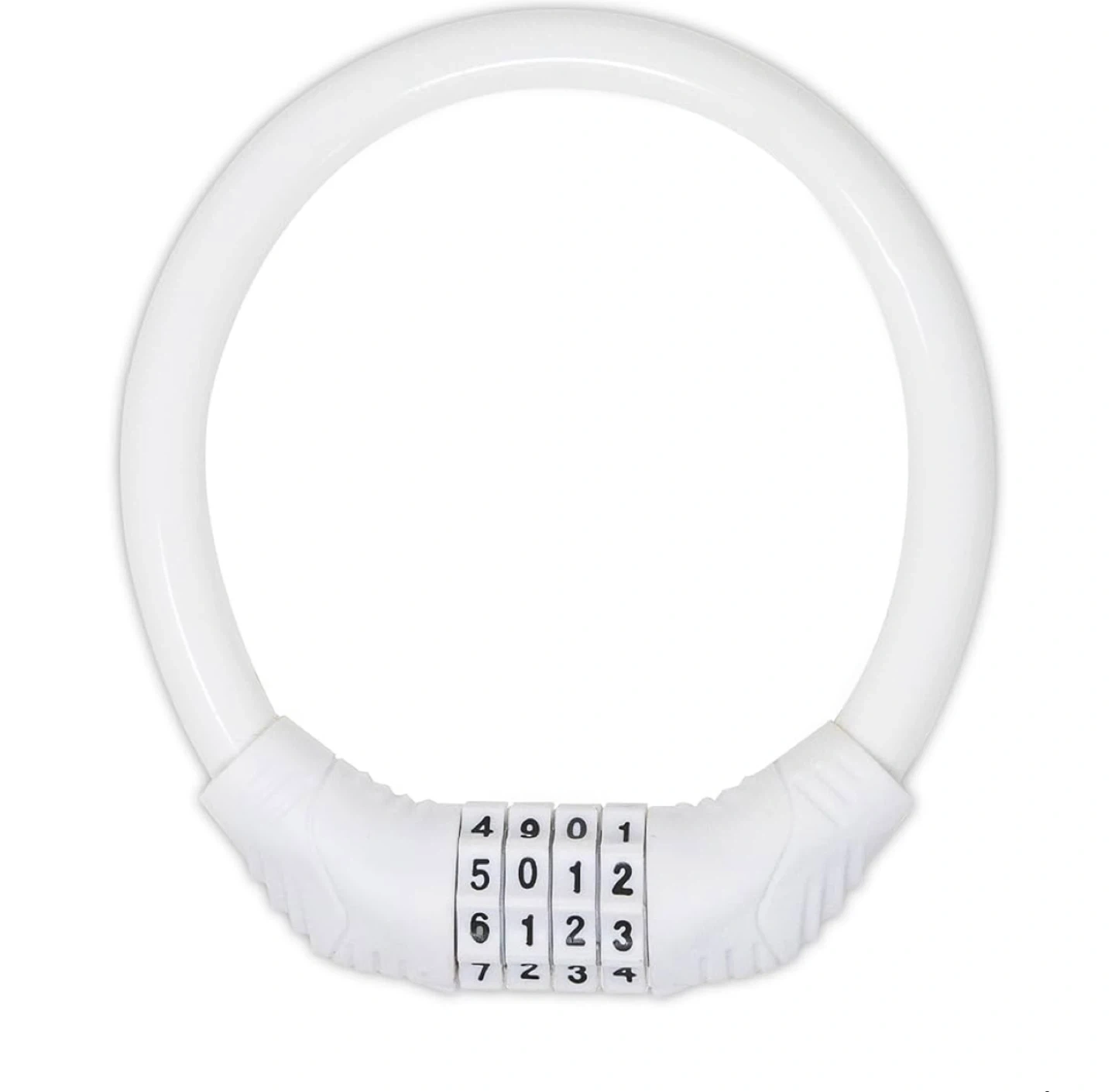 Selling a white Urban August bike lock in size small! It's perfect for handles that are closer together or require a tighter fit. The lock has a combination dial for security. It measures 12.5 inches (31.75 cm) in internal circumference and is 0.40 inches (1 cm) thick