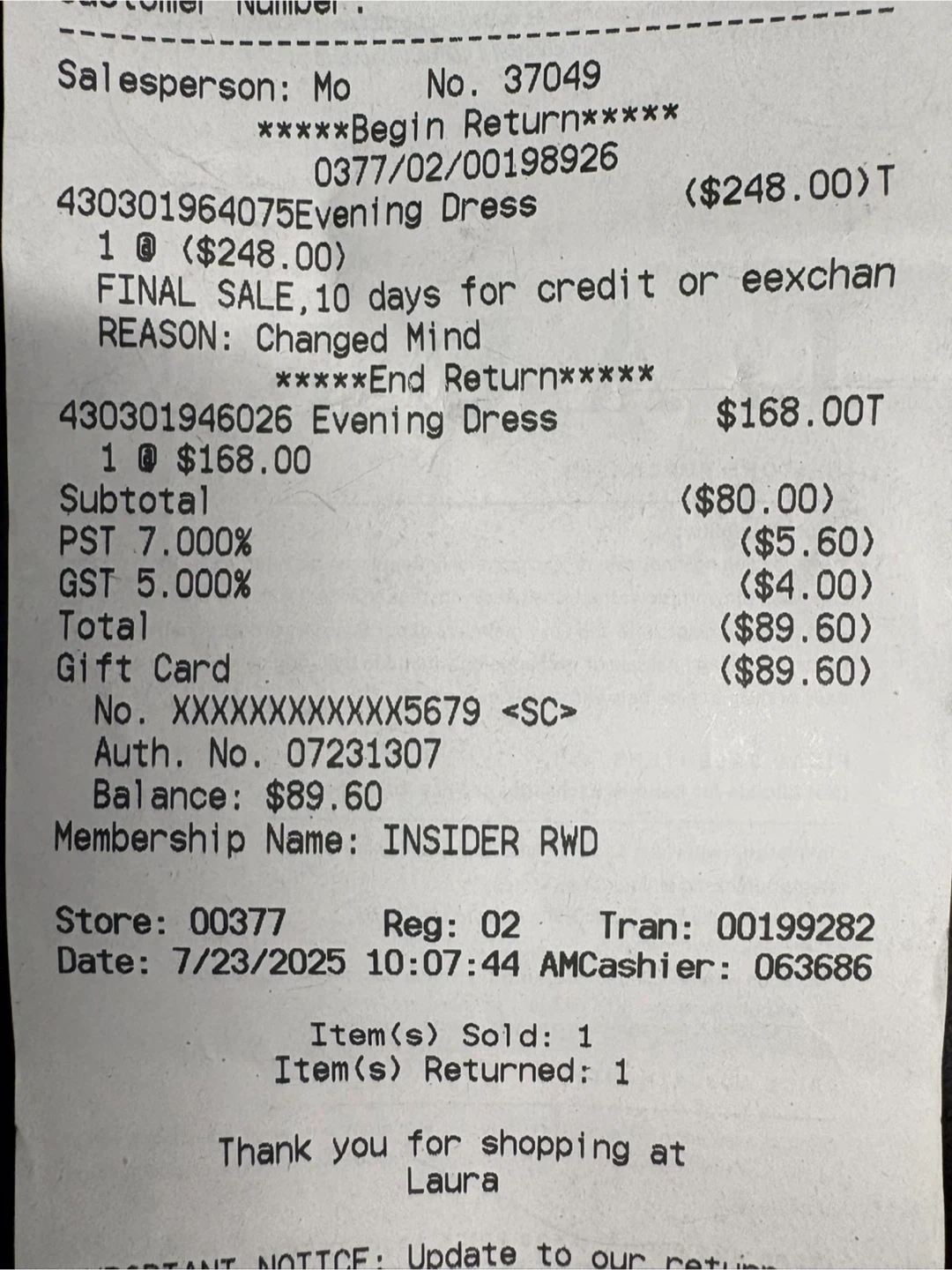 I can meet you at the Laura store in Richmond Centre to verify the gift-card.