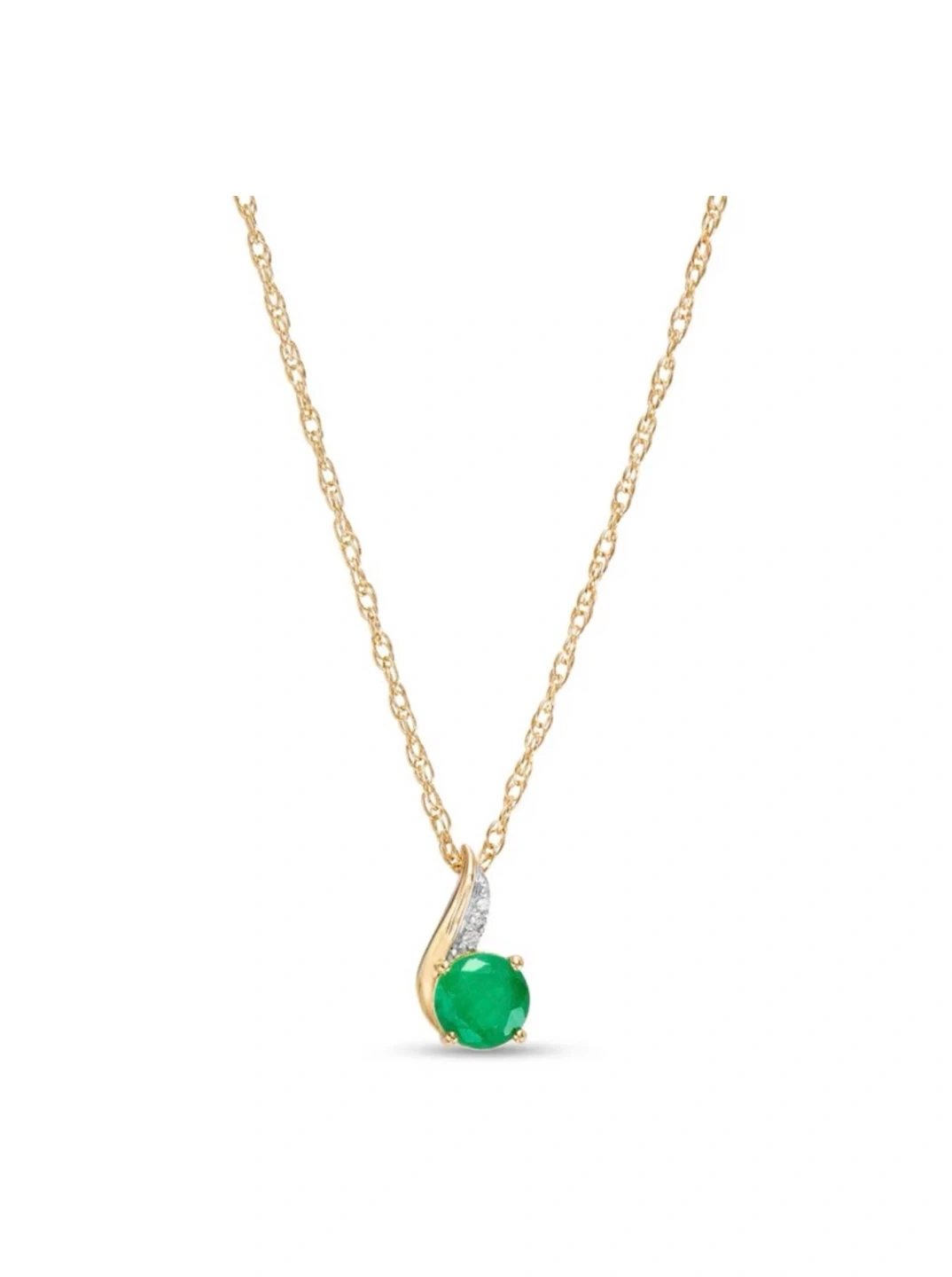 Here's a lovely gold chain necklace featuring a vibrant emerald pendant with diamond accent. It's a beautiful piece that would add a touch of elegance to any outfit. Perfect for everyday wear or special occasions!