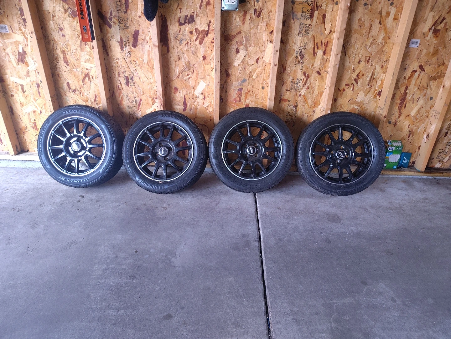 Set of 4 Black Alloy Wheels with Continental Tires