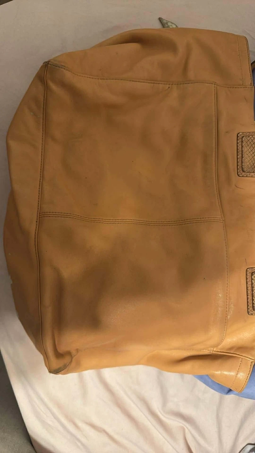 crafted from full-grain cowhide leather. It's a stylish and durable bag, perfect for everyday use. The bag has some signs of wear.