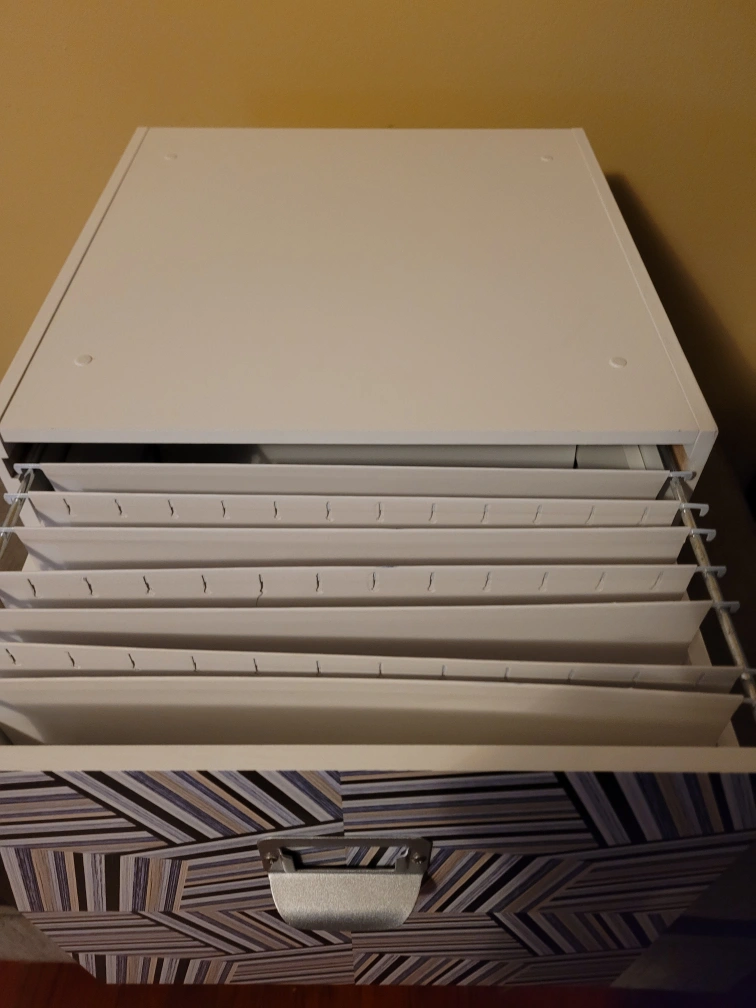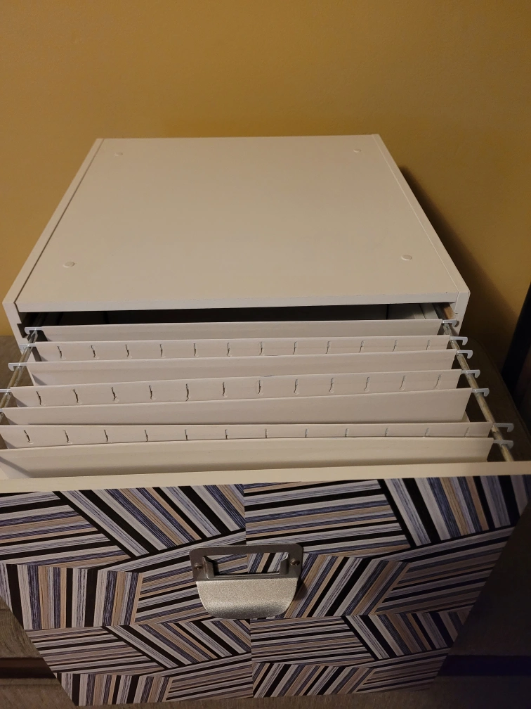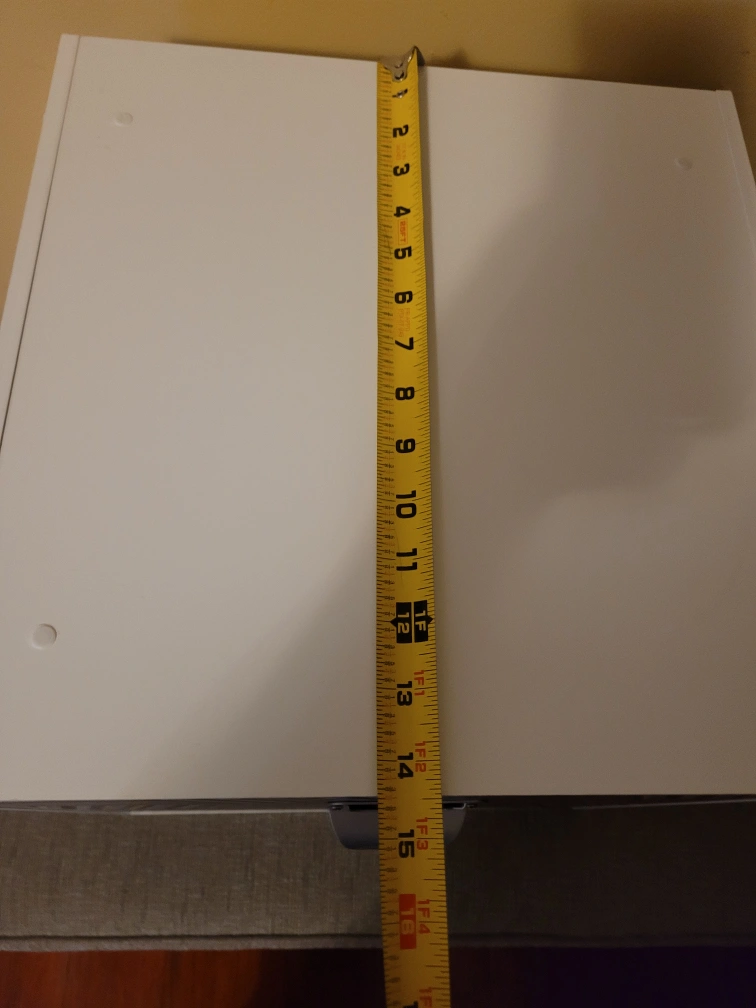 Selling a white filing cabinet in good condition. The dimensions are approximately 14 inches wide and 15 inches tall. Perfect for home office, organizing your documents and it fits under a desk or small space