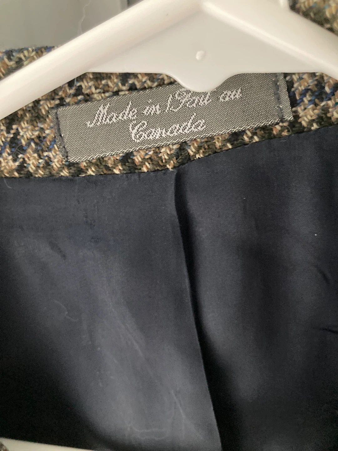 Here's a classic wool blazer from Tip Top Classics! It's made in Canada and is in great condition. Perfect for adding a touch of sophistication to your wardrobe