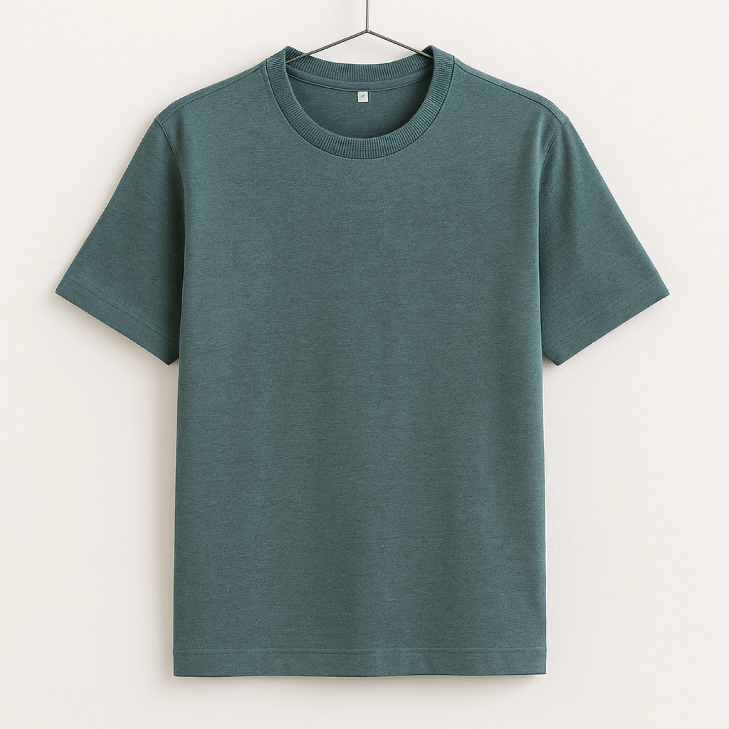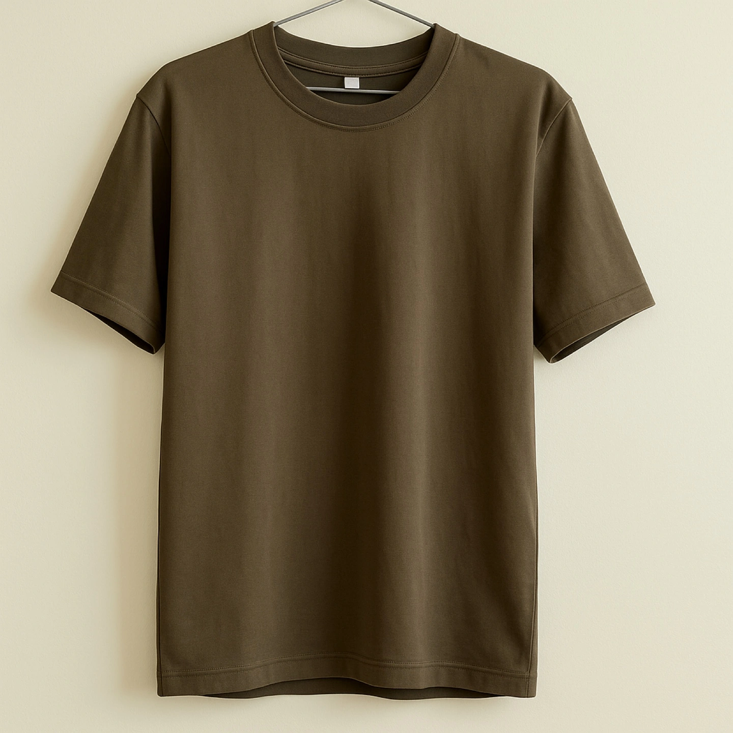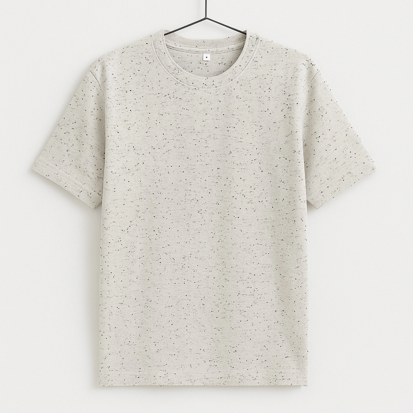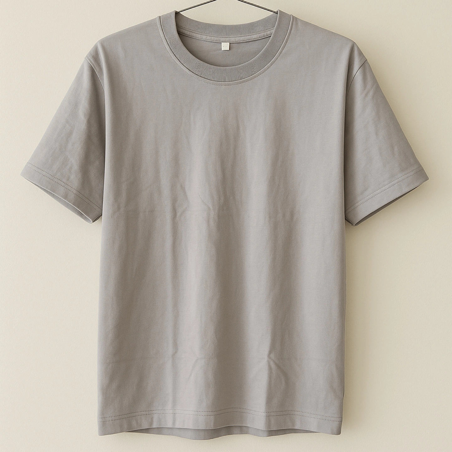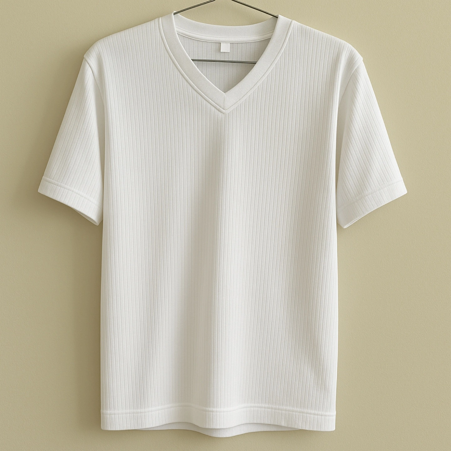 Five short sleeve t-shirts. Colors include gray, white, black, and olive green. One white shirt is ribbed. Great for layering or everyday wear.