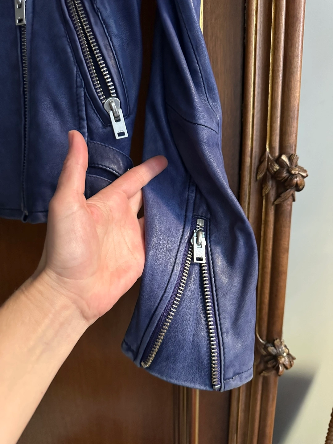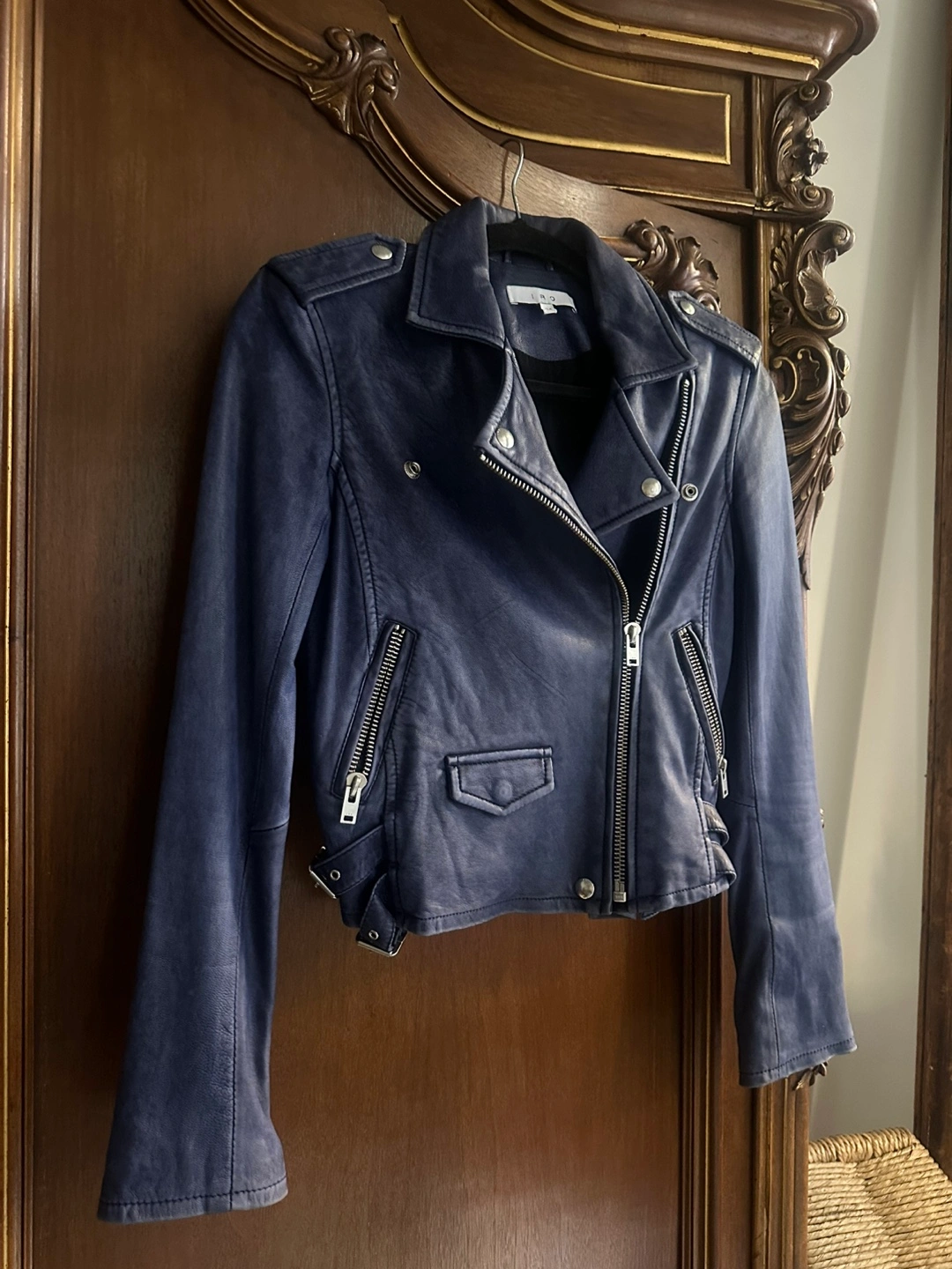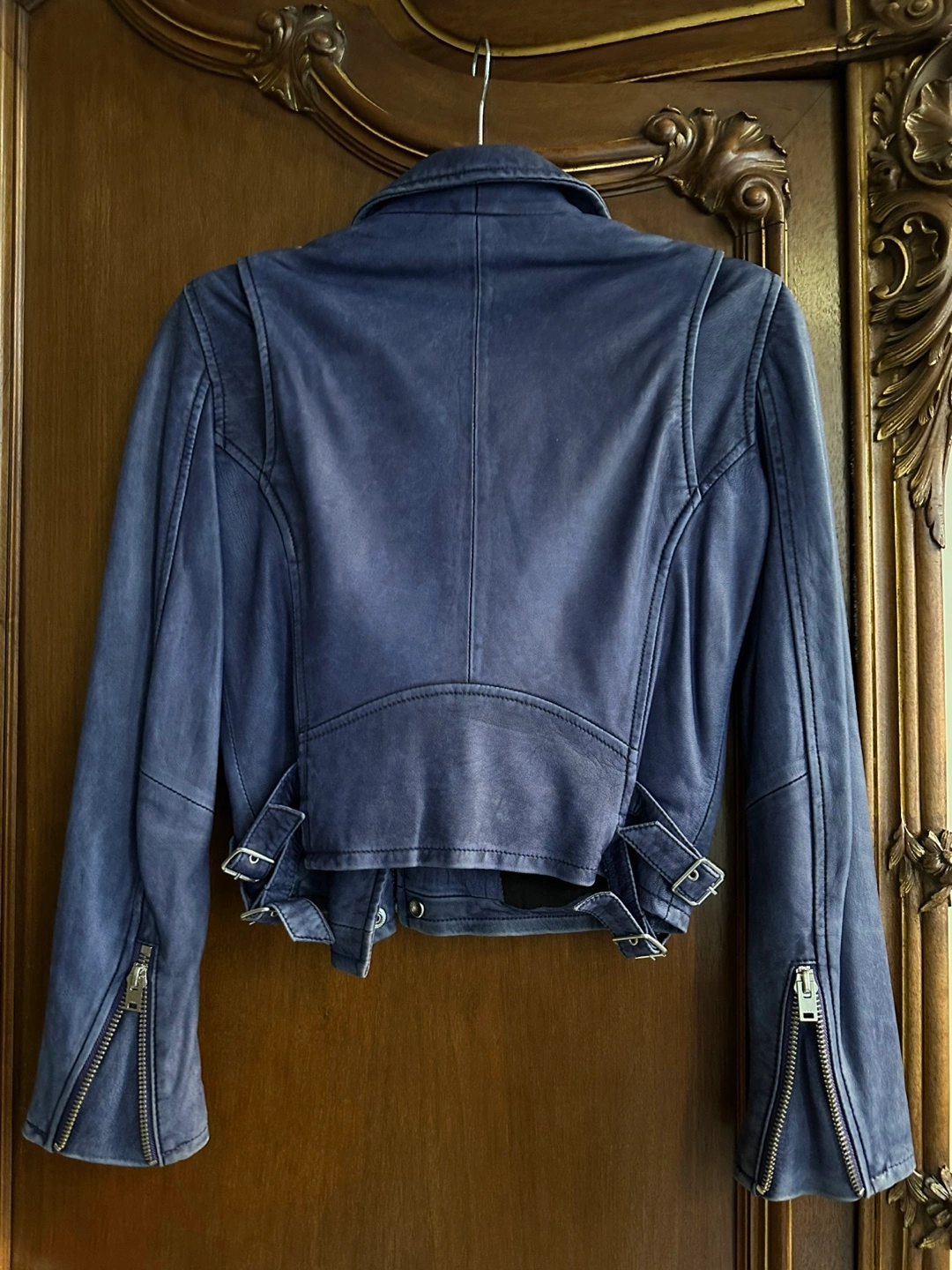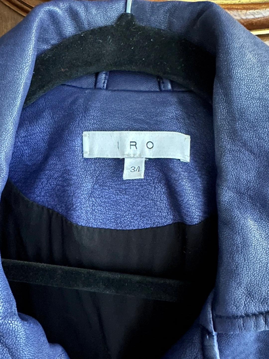 IRO Ashville Blue Lambskin Leather Jacket $1200 Size 34/2 US