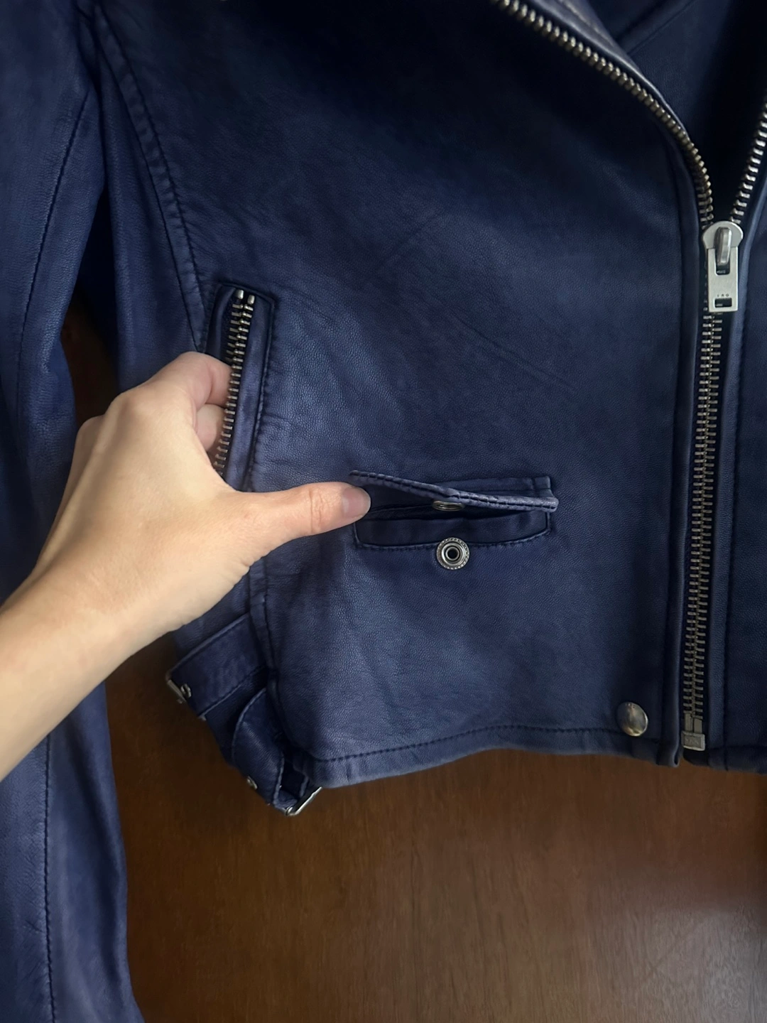 The IRO Ashville Blue Lambskin Distressed Leather Moto Jacket is a stylish and edgy women's jacket in size 2. Made from high-quality leather, this motorcycle jacket features a distressed blue color that adds a bold statement to any outfit. With a brand known for its sleek designs, this jacket is perfect for those who want to make a statement with their fashion choices. The size and fit are tailored for a regular size 2, making it a versatile and fashionable addition to any wardrobe.