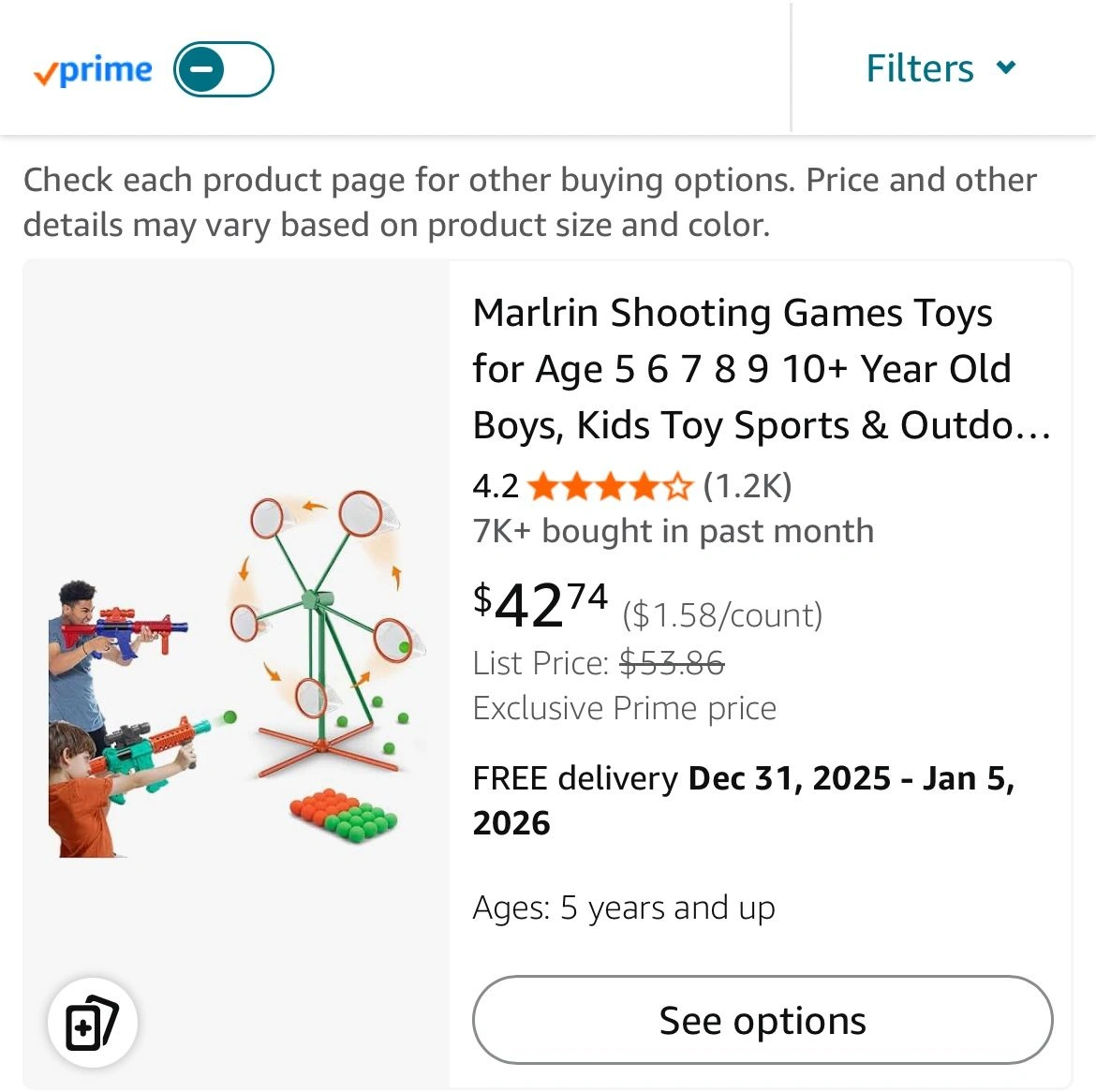 Buy & SellMarlrin Shooting Games Toys for Ages 5-10+Marlrin Shooting Games Toys for Ages 5-10+$35Fun toy sports and outdoor game set for kids. Includes a moving shooting target, 2 popper air toy guns, and 24 foam balls. Great gift for boys and girls ages 5 and up.WHERE TO MEETCheck LocationView MapSELLERverifiedNayelleBrighton Park670 reviews0 chats·0 favorites·1 viewsSEND CHAT TO SELLERHi Nayelle! I’m interested in your listing.Hi Nayelle! I’m interested in your listing.Get the Karrot app to chatSign In to chat