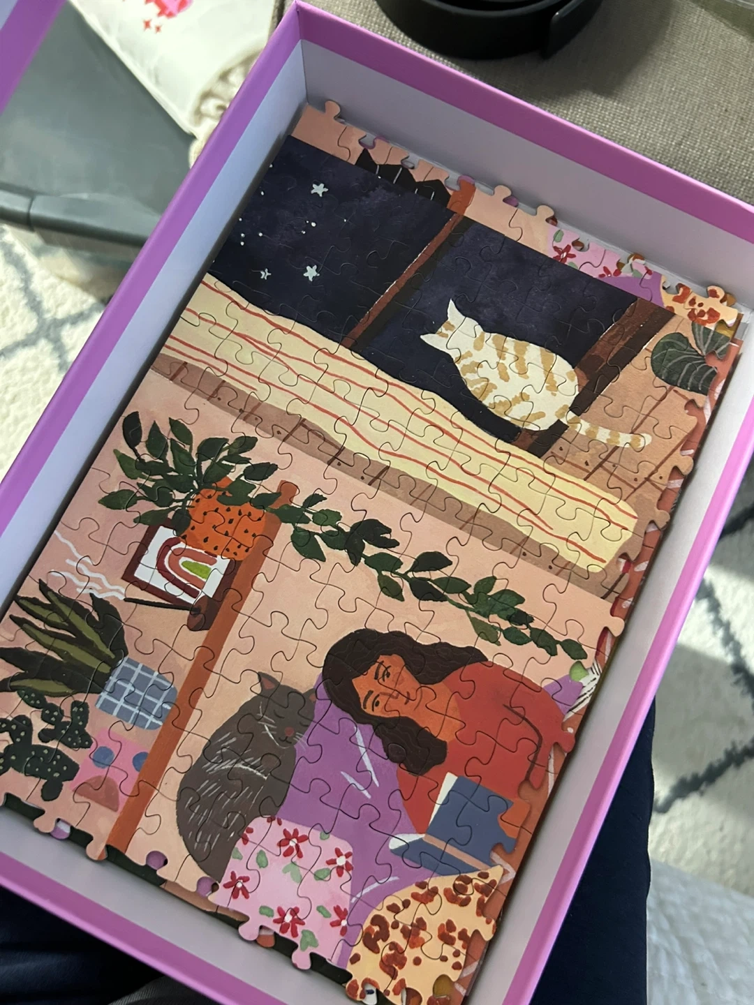 "Purrfectly Cozy" 500 Piece Puzzle with cats and girl
