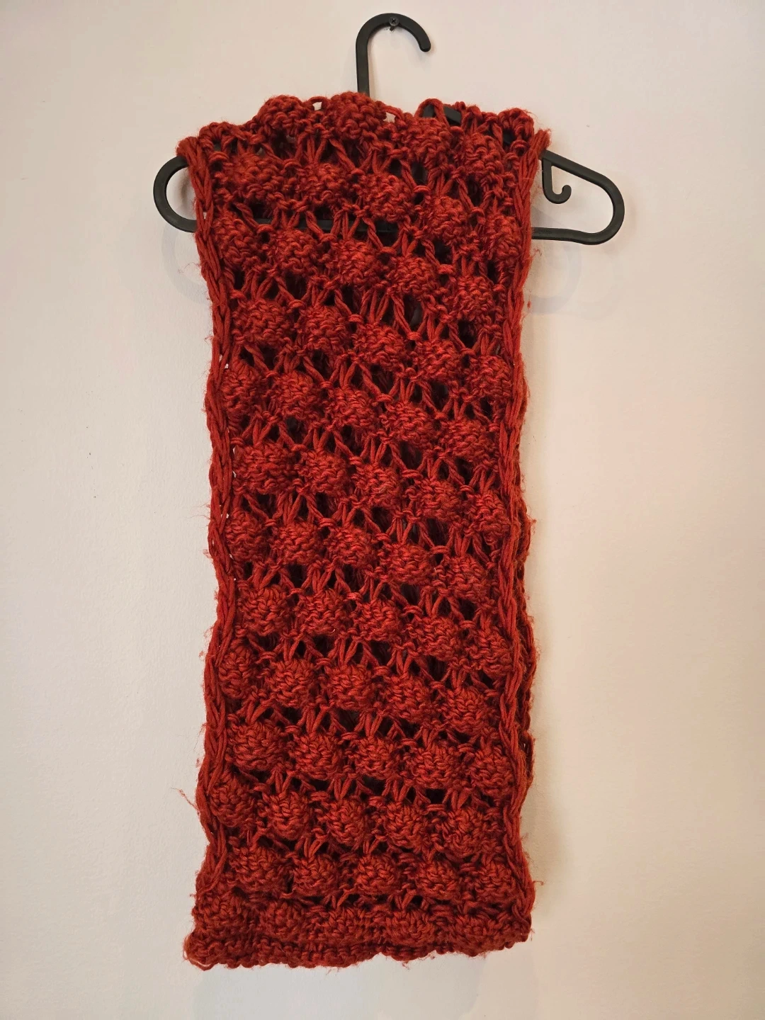 Selling a handmade knit scarf in a lovely rust colour! 🧣 It's in great condition and ready to keep you warm on chilly days! 🍂❄️ #Scarf #Knit #Rust #Fashion #Warmth