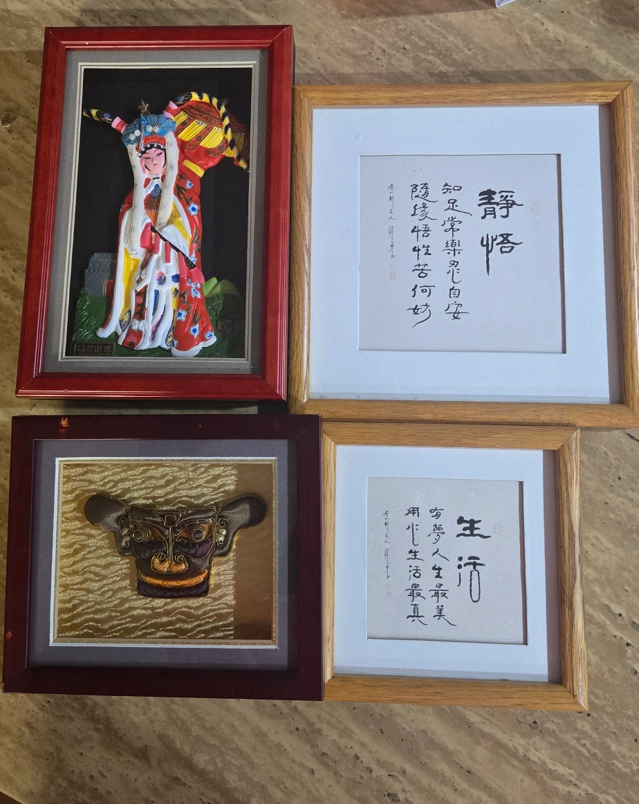 Selling three framed Asian art pieces! They're in great condition and ready to add a touch of culture to your home. Perfect for anyone who appreciates unique and beautiful artwork.