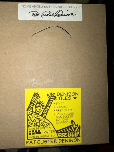 Pat Custer Denison Signed Tile SOME ANGELS NEED TRAINING 6" x 8"