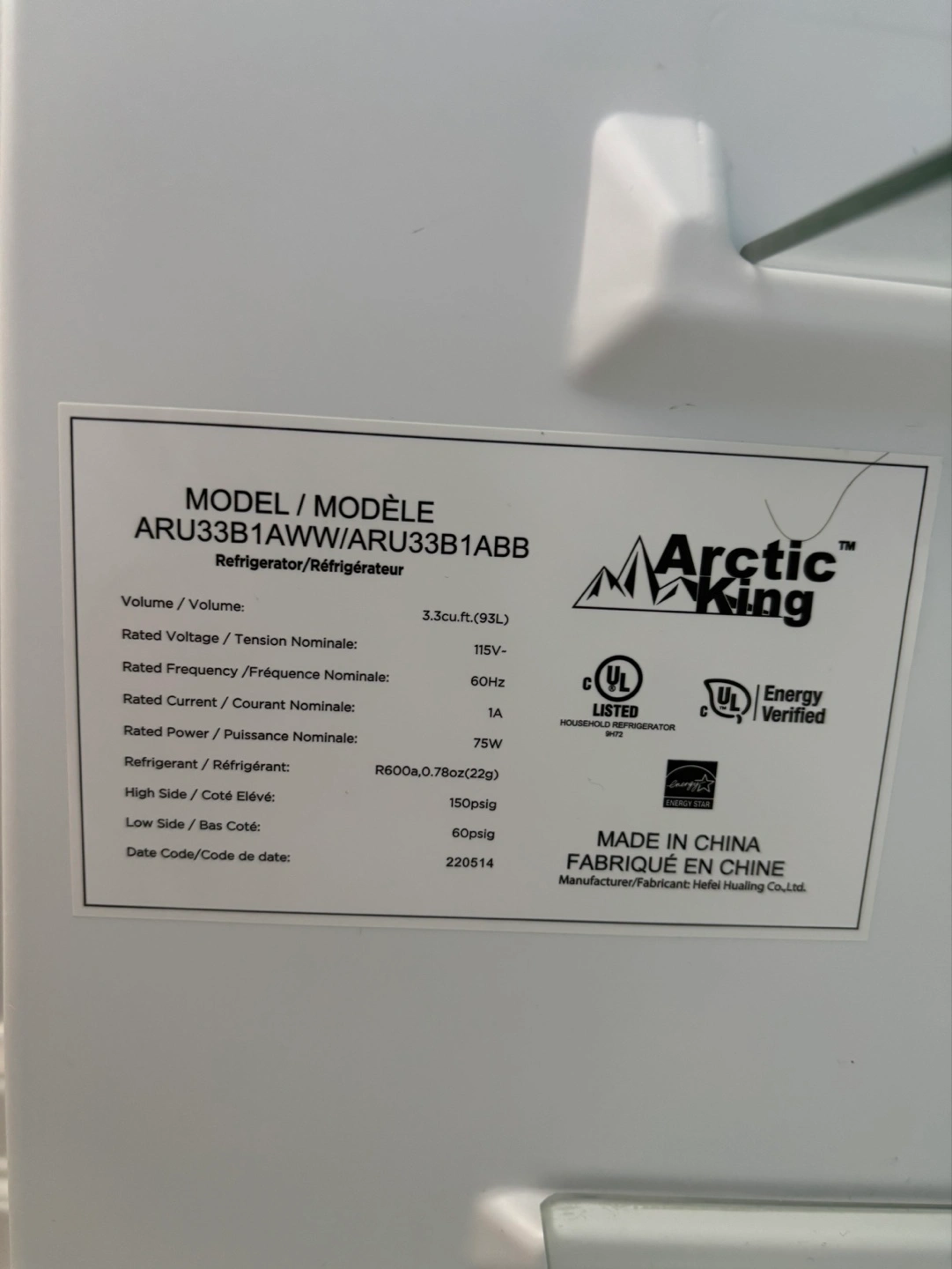 Arctic King 3.3 Cu Ft single door mini fridge with Freezer.