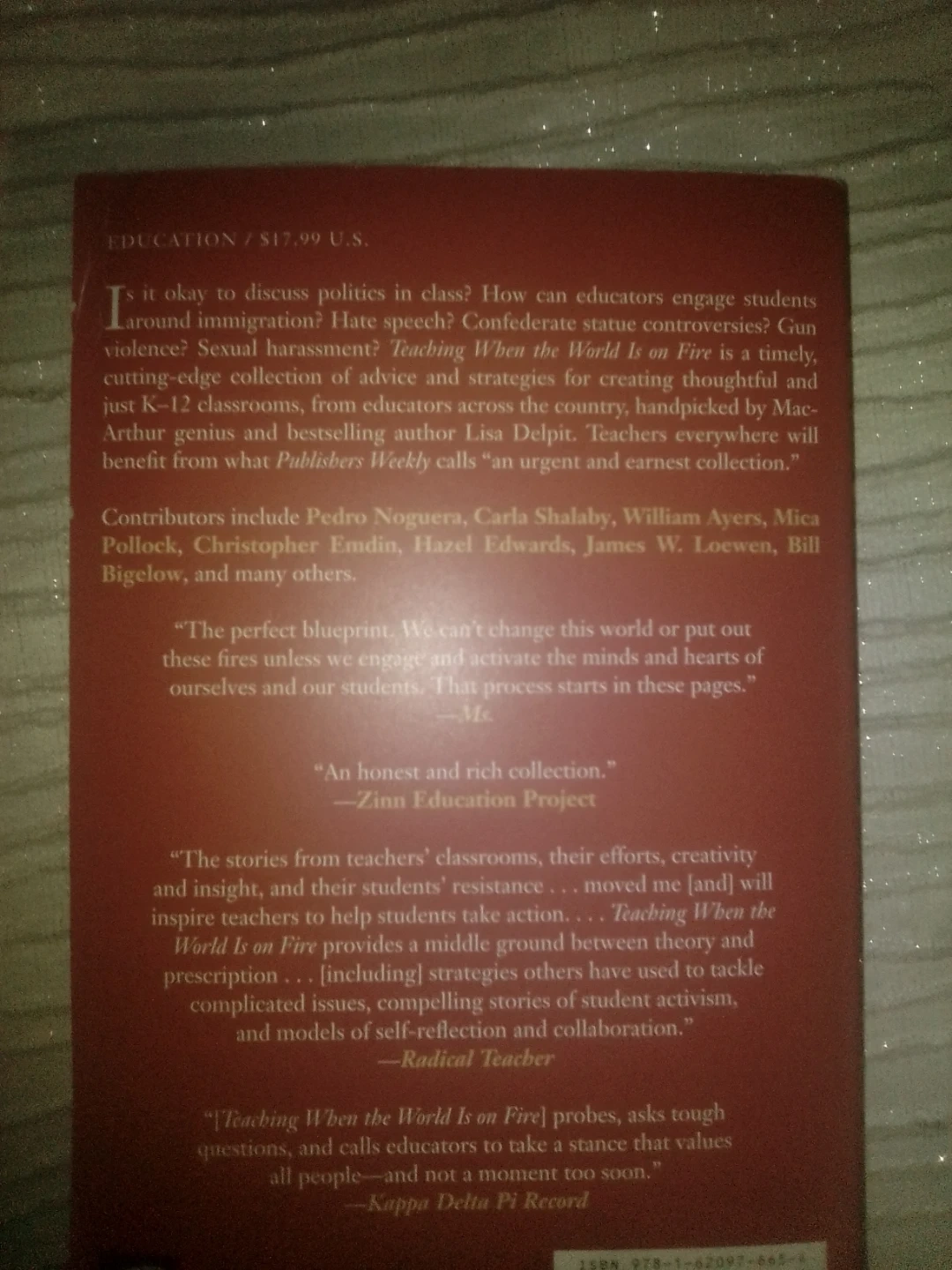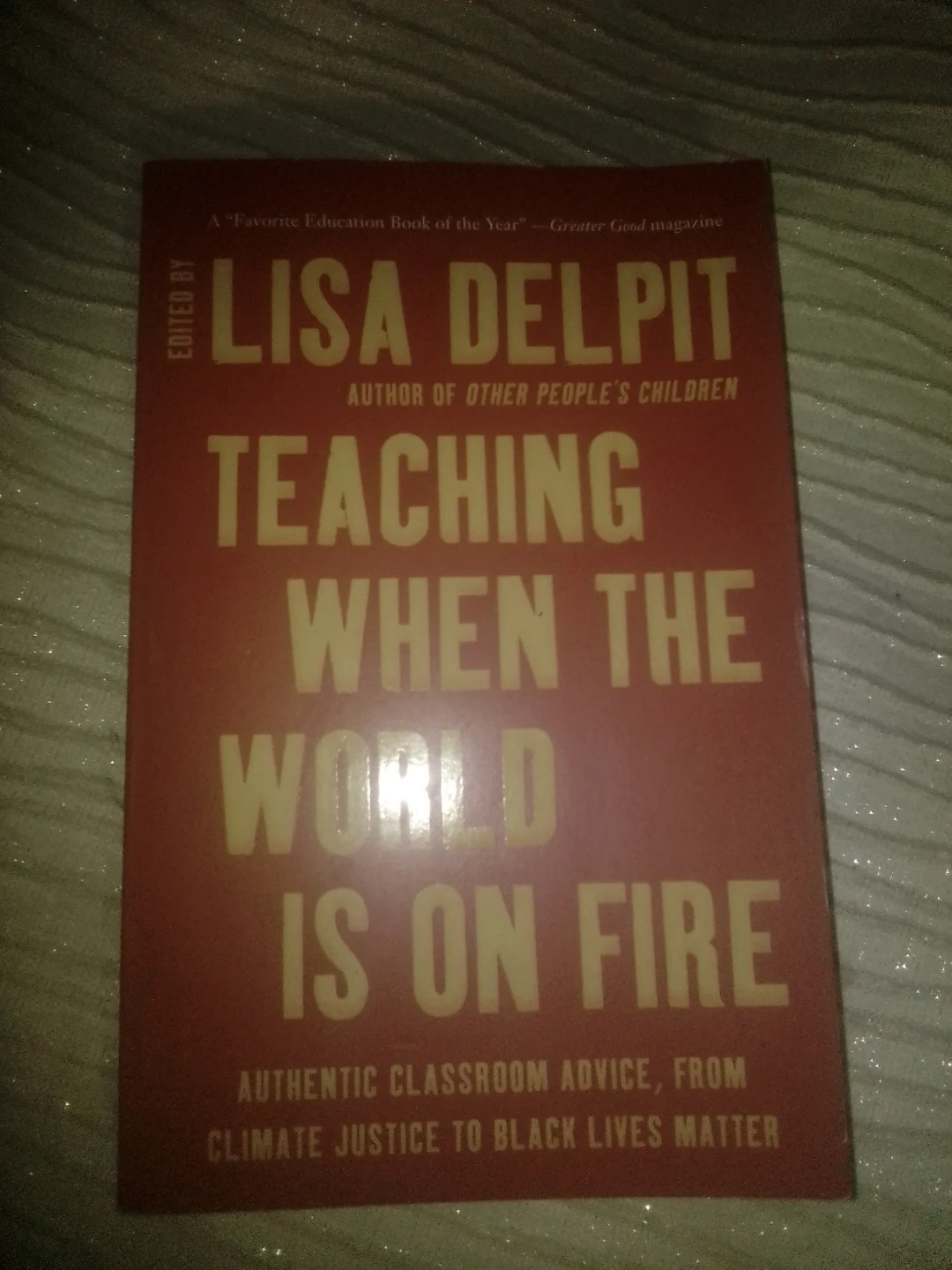 Teaching When The World Is On Fire edited by Lisa Delpit. This book offers authentic classroom advice covering topics from climate justice to Black Lives Matter. It provides strategies for educators to engage students on complex issues.235 pages.