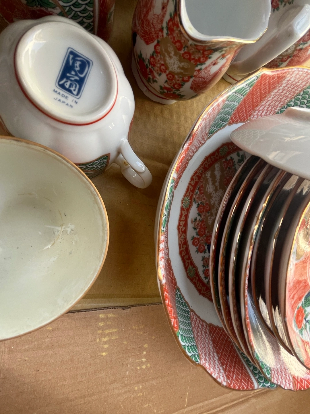 Vintage 15 piece set Japanese ceramic Arita Imari Peacoc