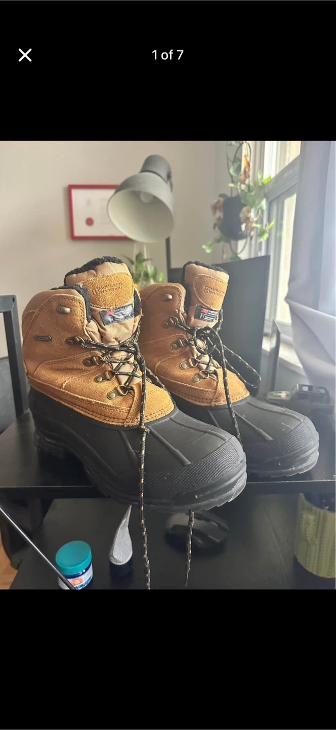 Warm and durable Timberland snow boots. Features a water-resistant lower and insulated upper. Great for keeping your feet cozy during the colder months!