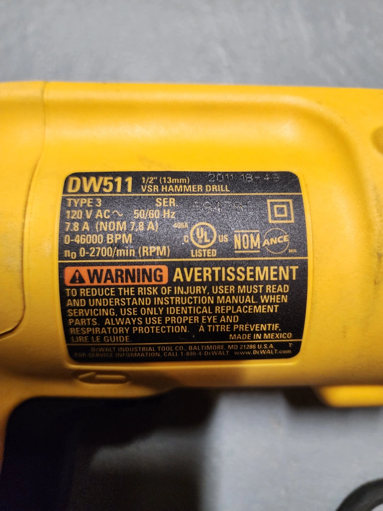 DEWALT Hammer Drill, 1/2-Inch, 7.8-Amp (DW511)